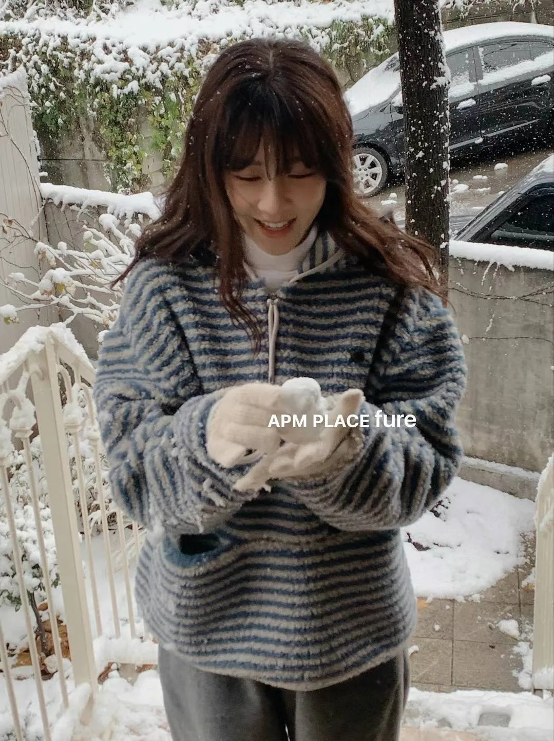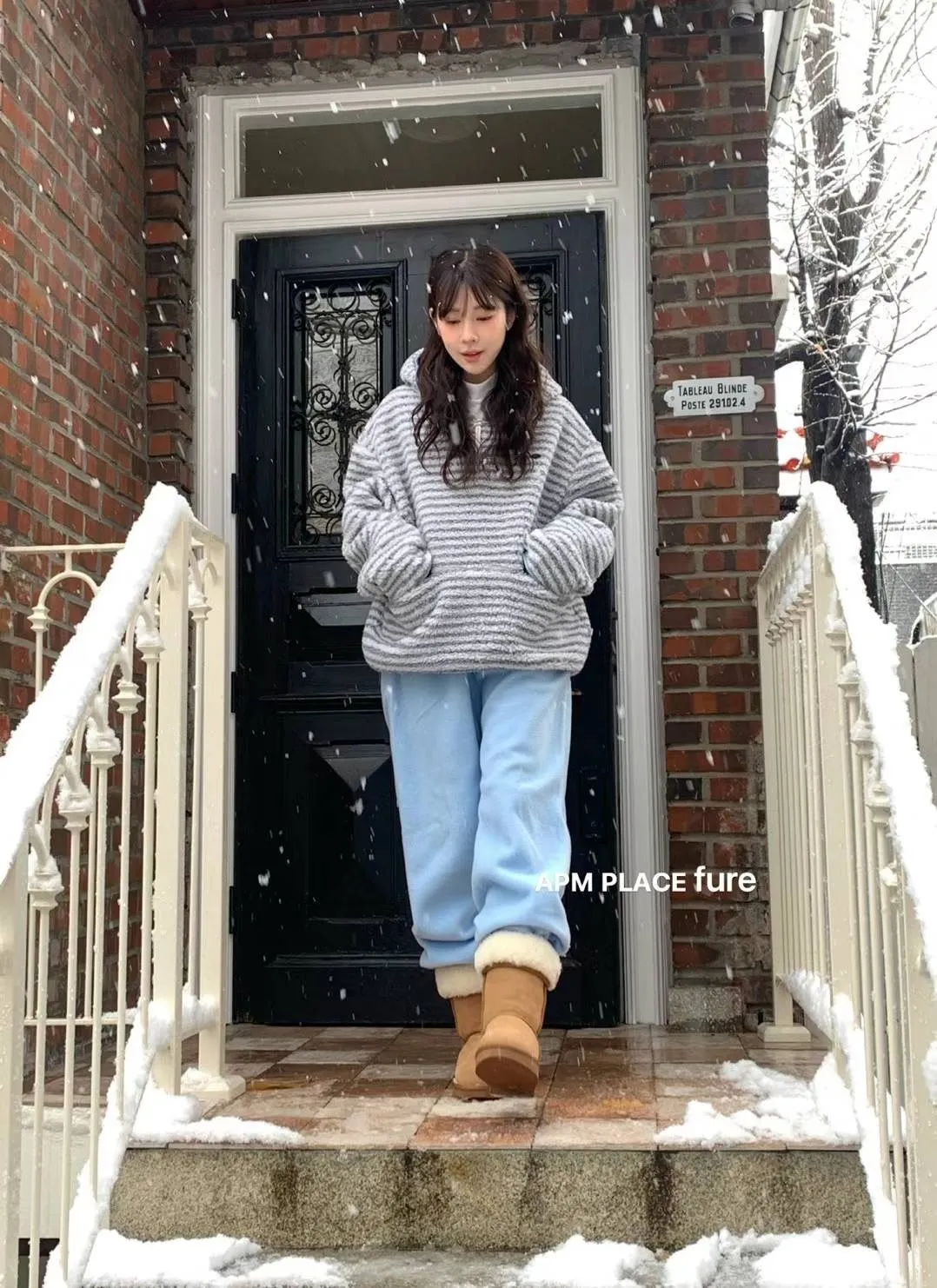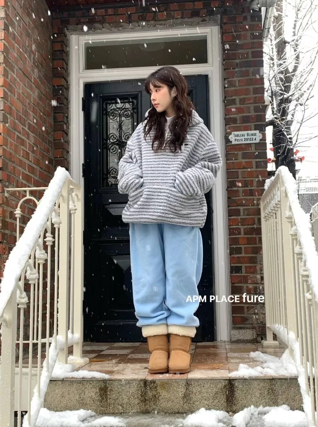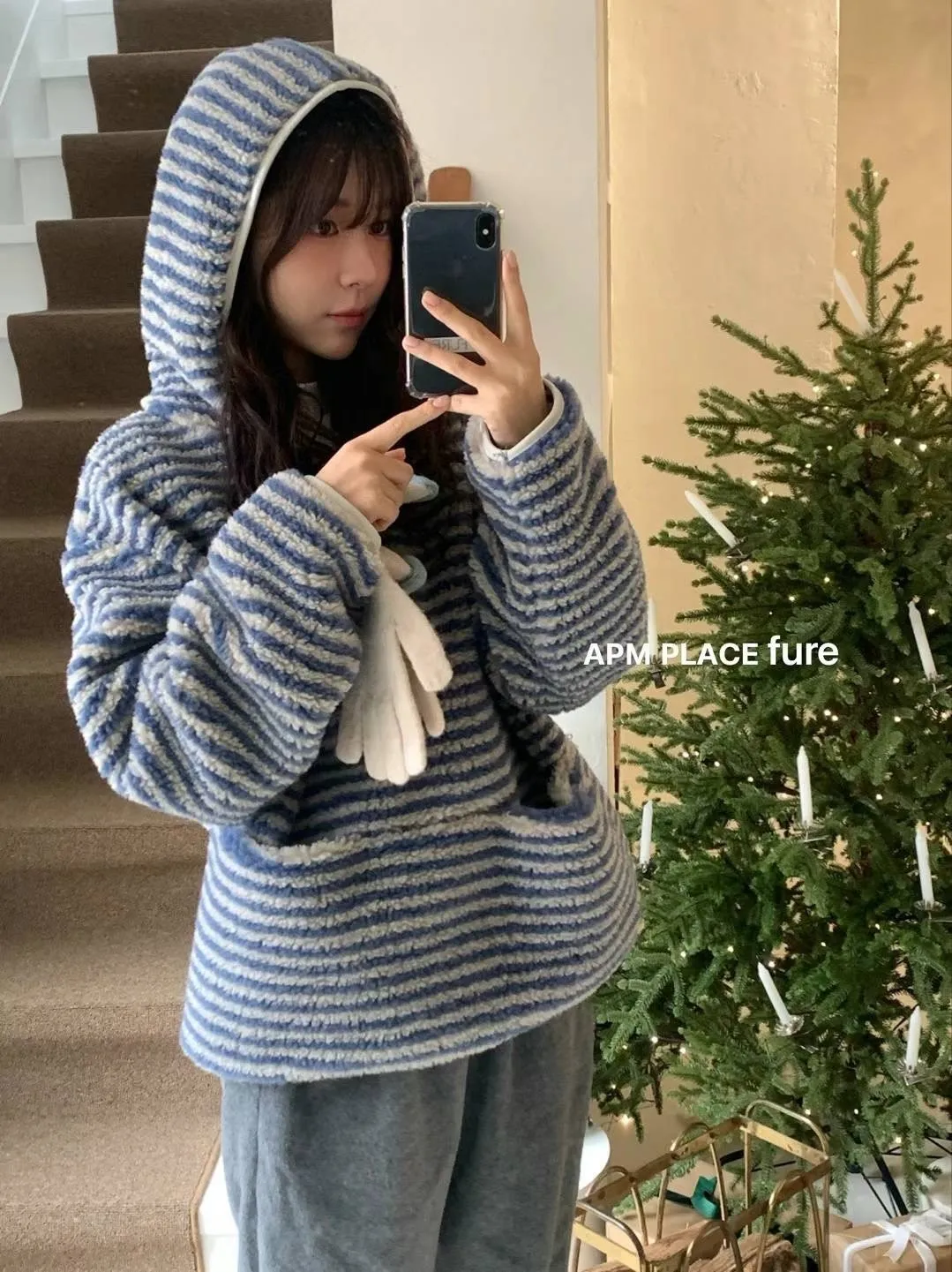 GD250羊羔毛橫條紋帽T 米 藍 官網價$1320 線上價$1290