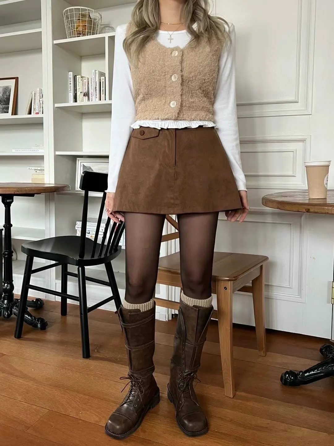 麂皮 是褲裙 有內裡 釦鍊穿脫 自然Aline版型 正常尺寸拿