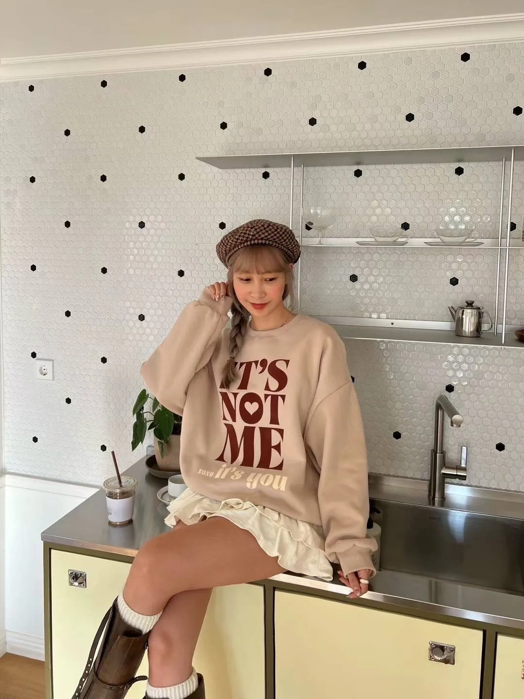 GD274美式not me 大學T 米 藍 奶茶 官網價$1020 線上價$990