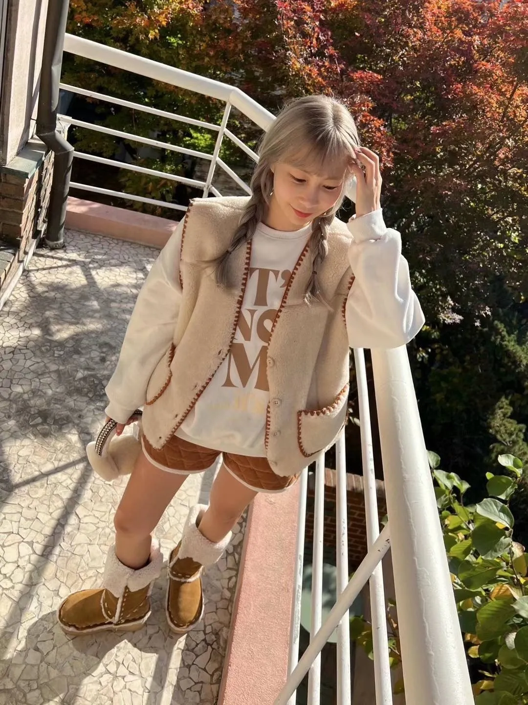 棉+聚酯 類似麂皮字體 內襯刷毛 手袖下擺鬆緊 落肩款 L號友善