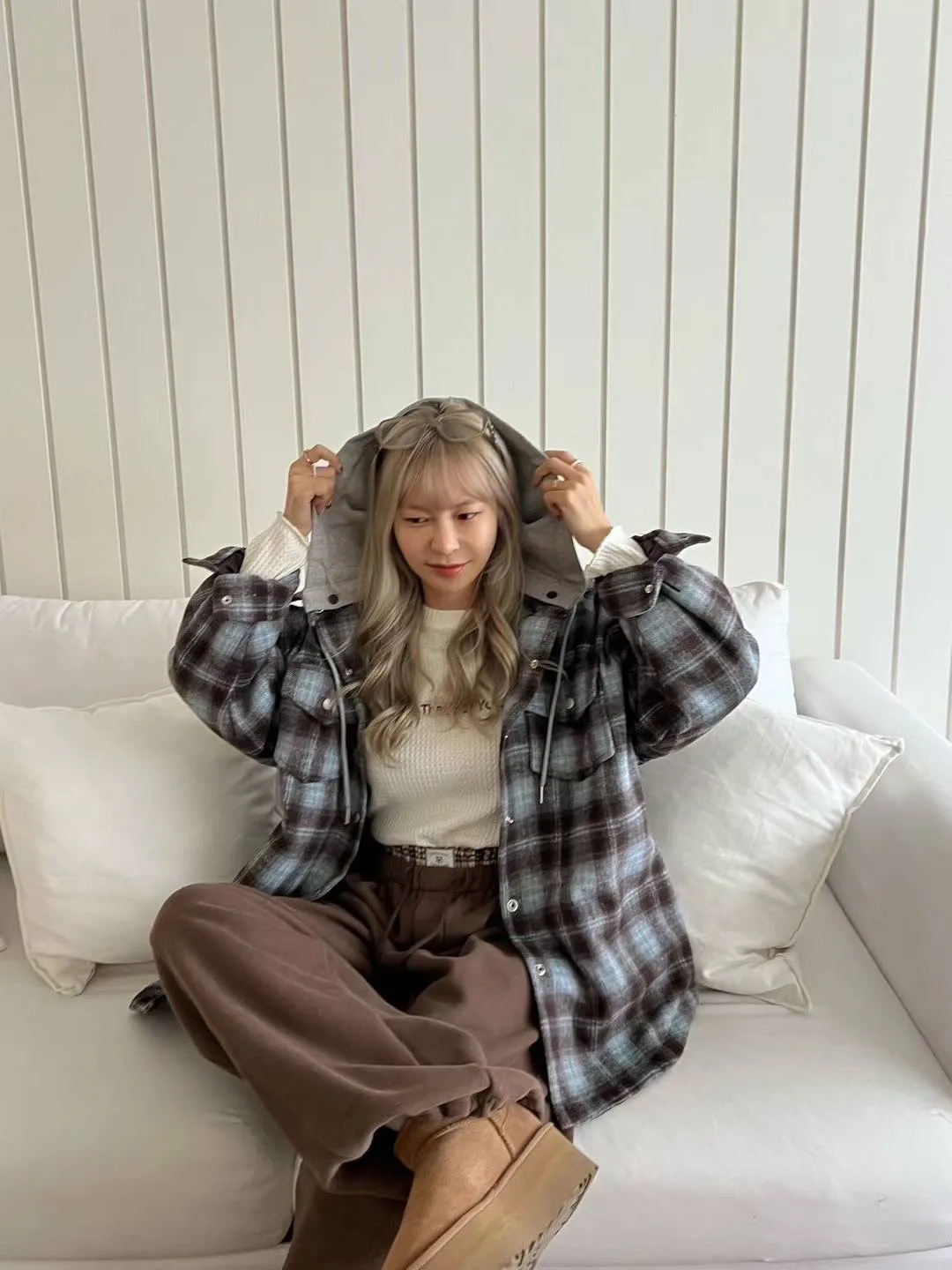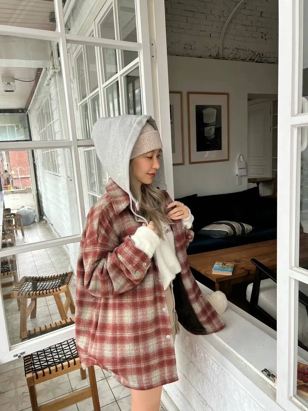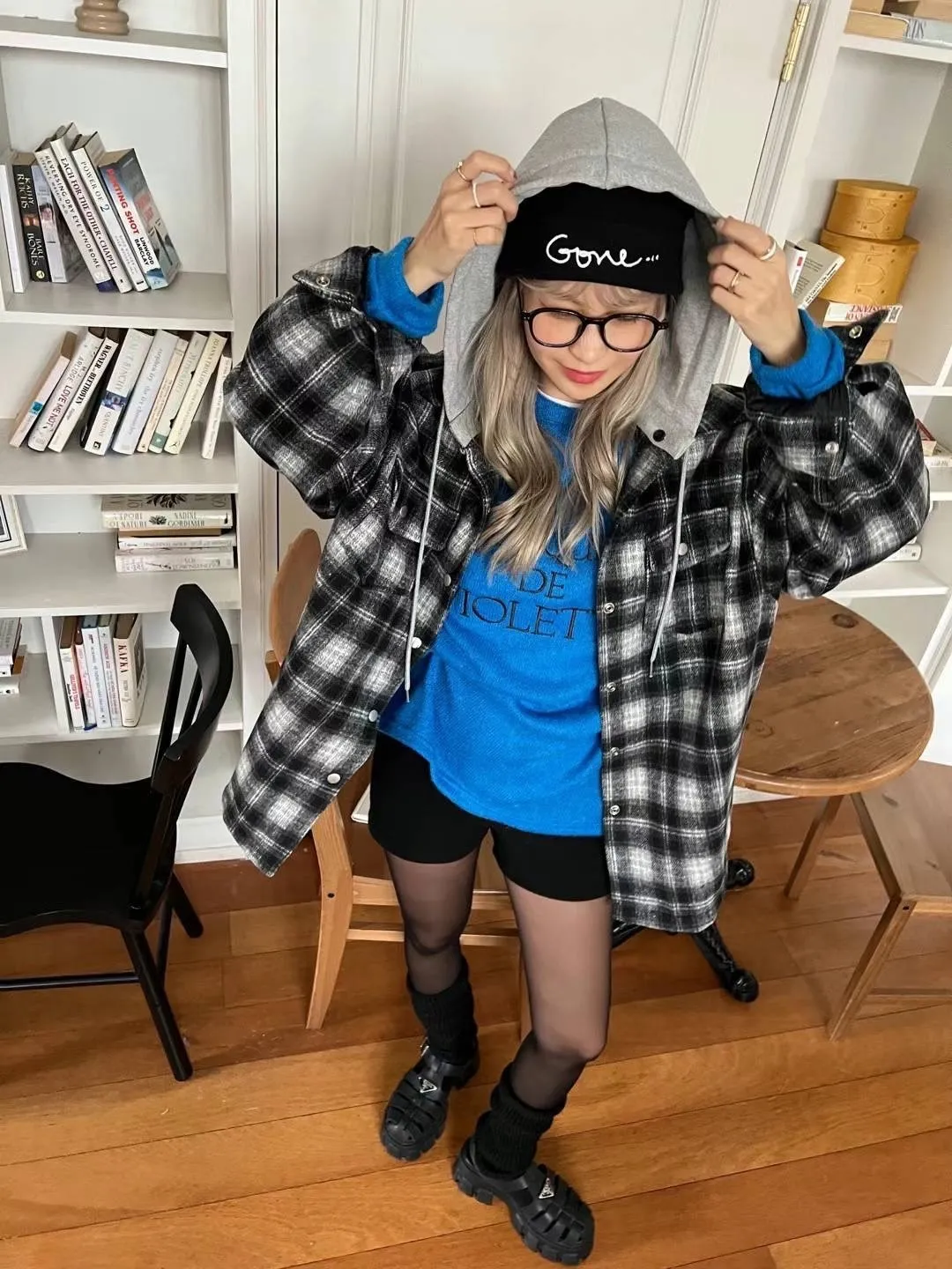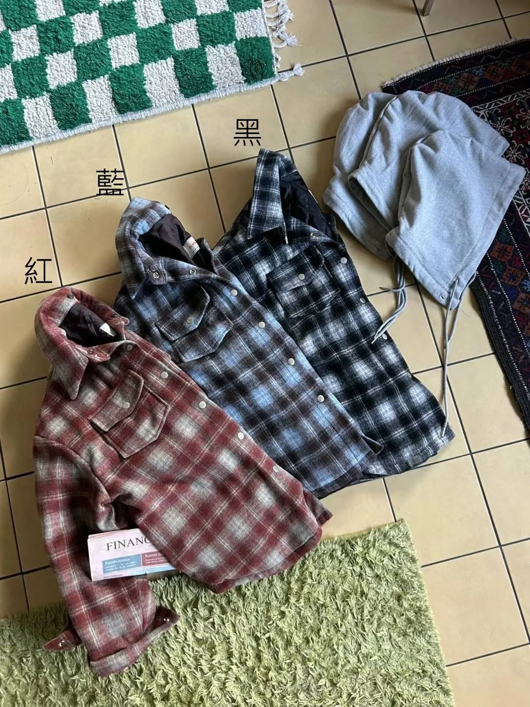 GD284男友風格紋連帽外套 藍 紅 黑 官網價$1880 線上價$1850