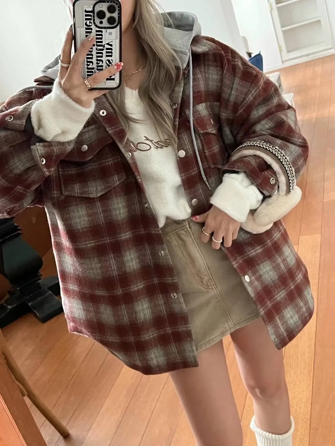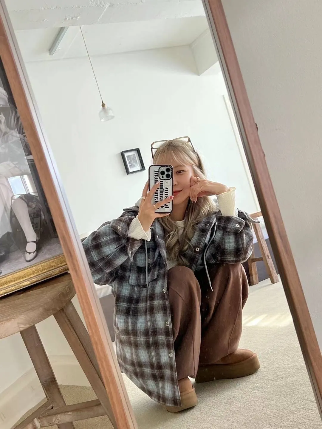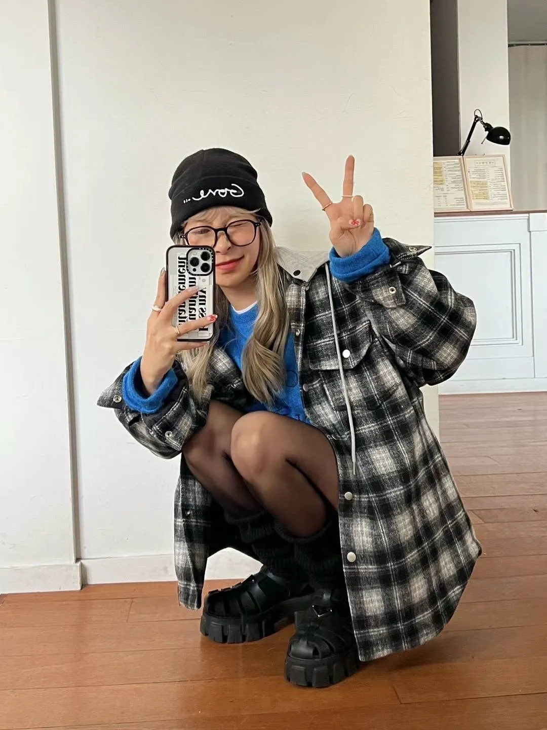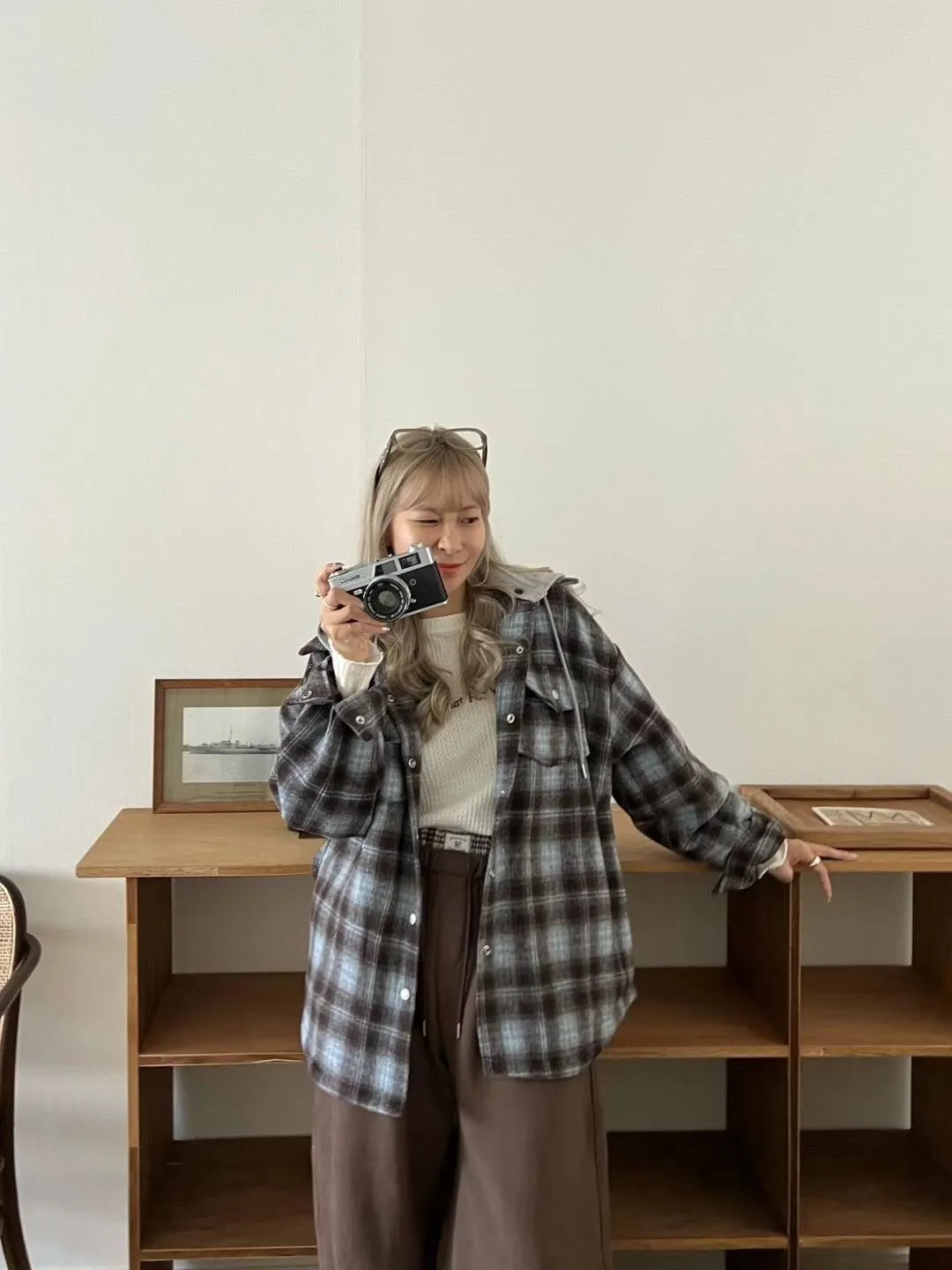GD284男友風格紋連帽外套 藍 紅 黑 官網價$1880 線上價$1850