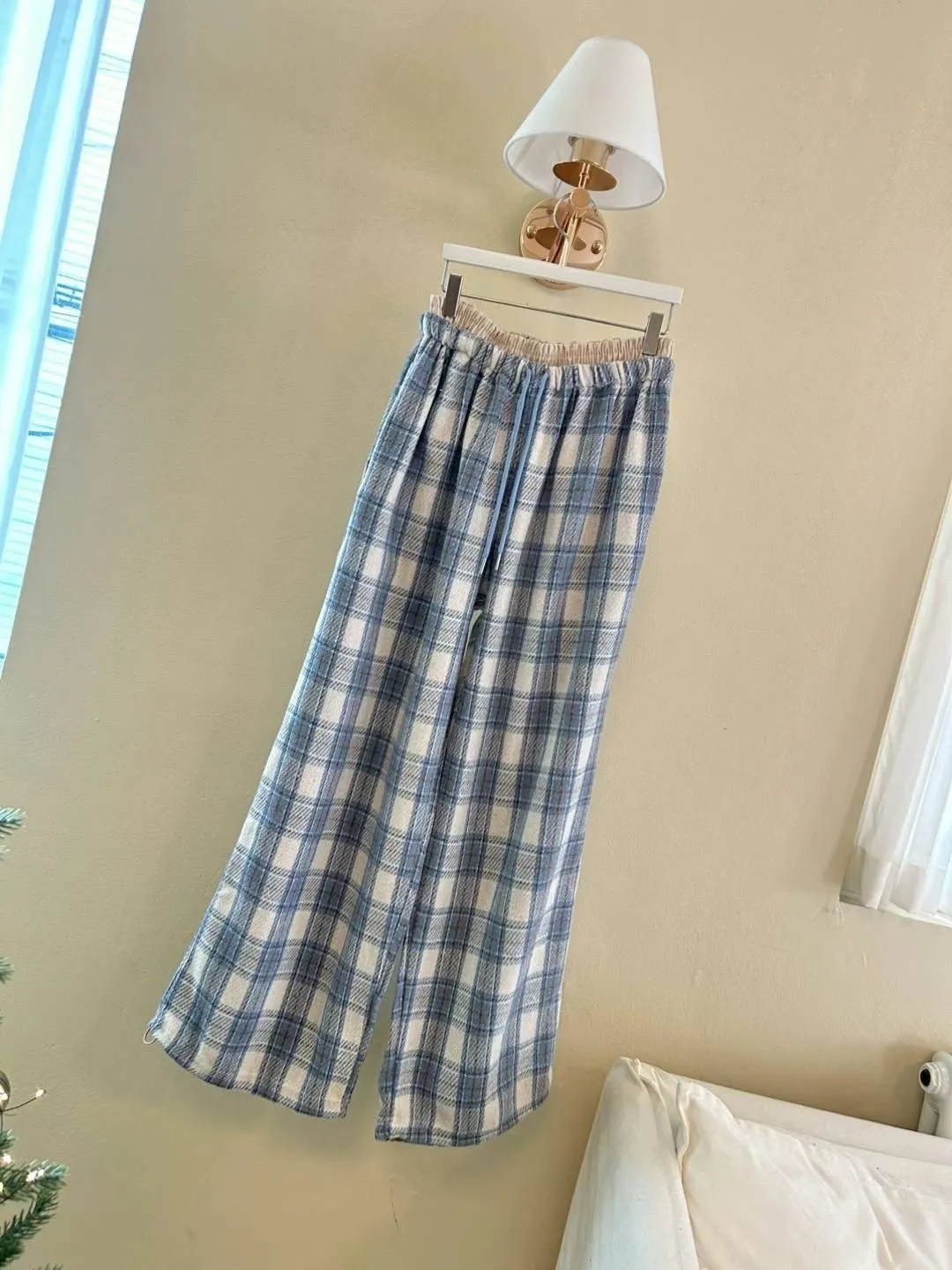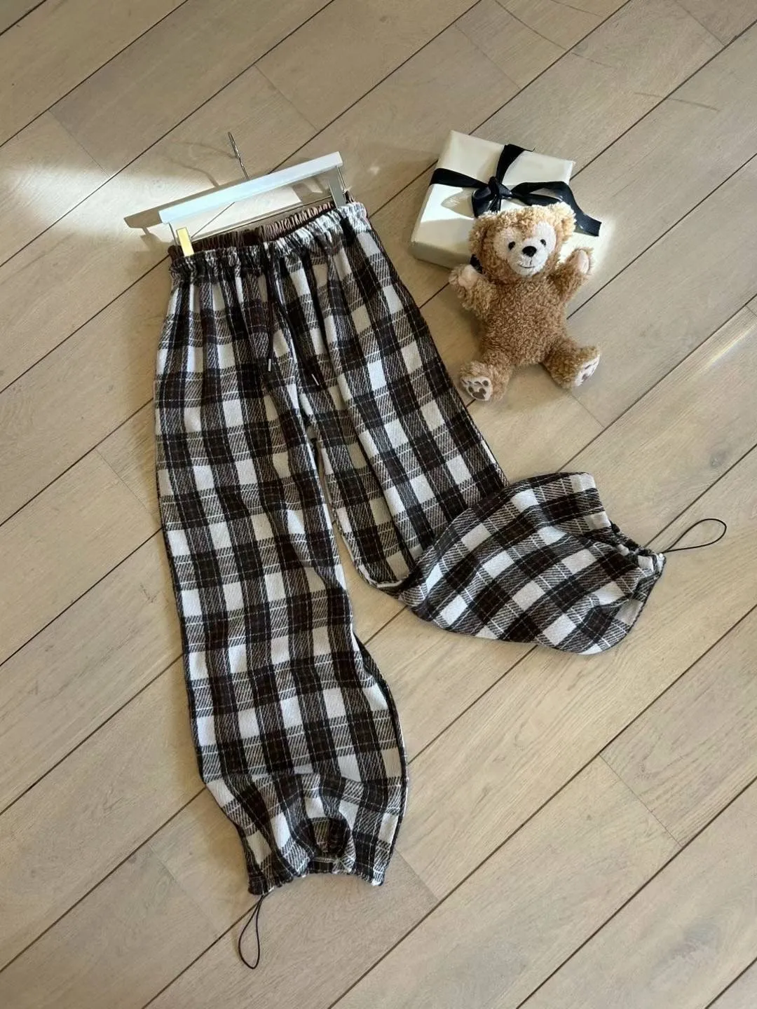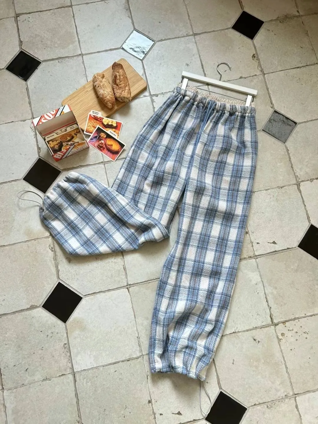 GD286層次褲頭高腰格紋長褲 藍 咖 官網價$1150 線上價$1120