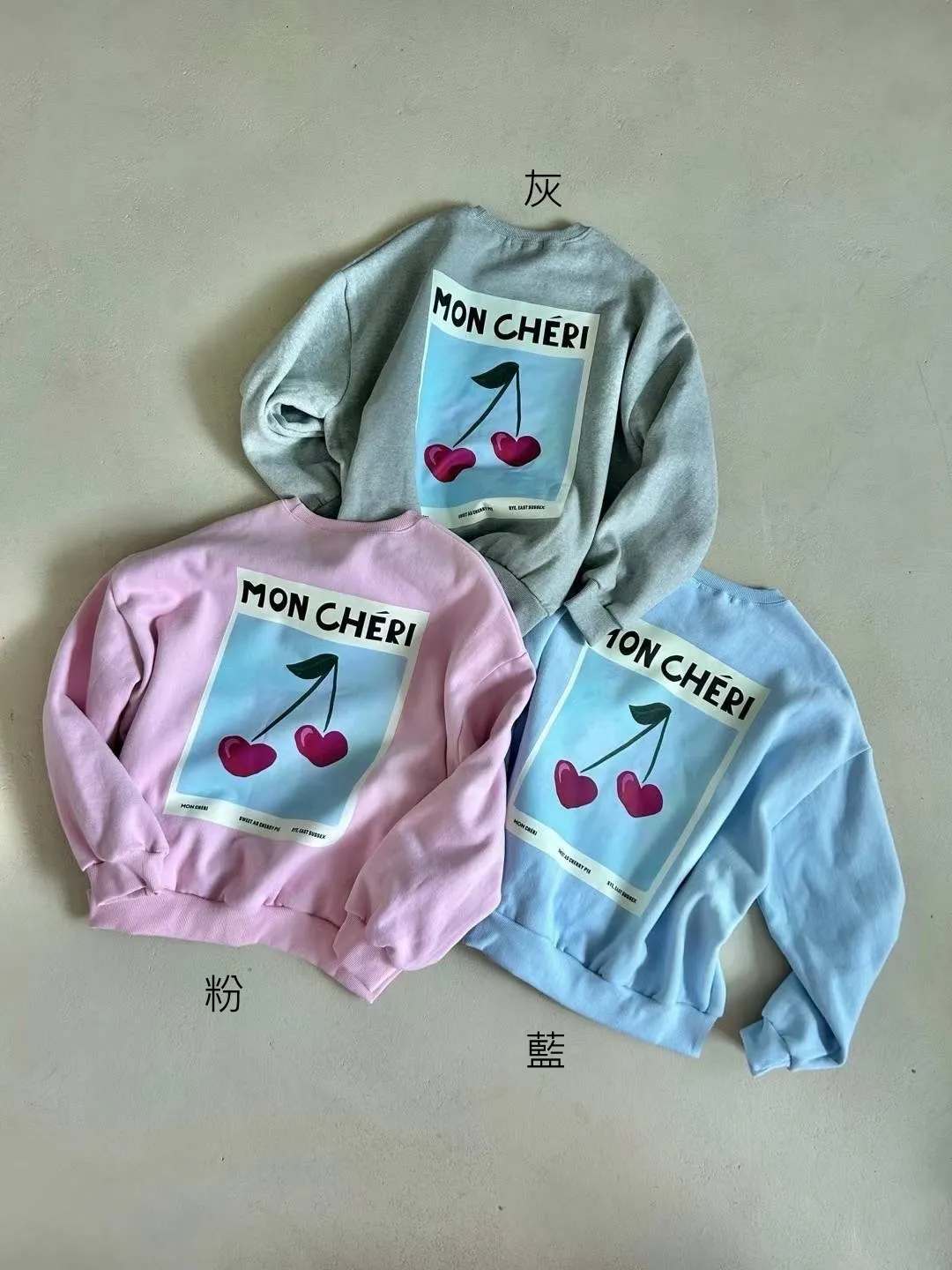 GD294櫻桃拍立得大學T 藍 粉 灰 官網價$1080 線上價$1050