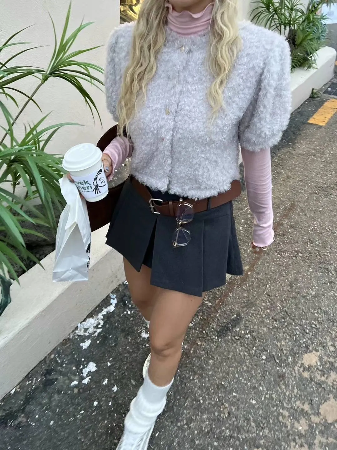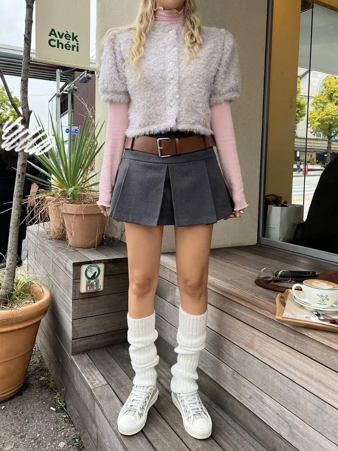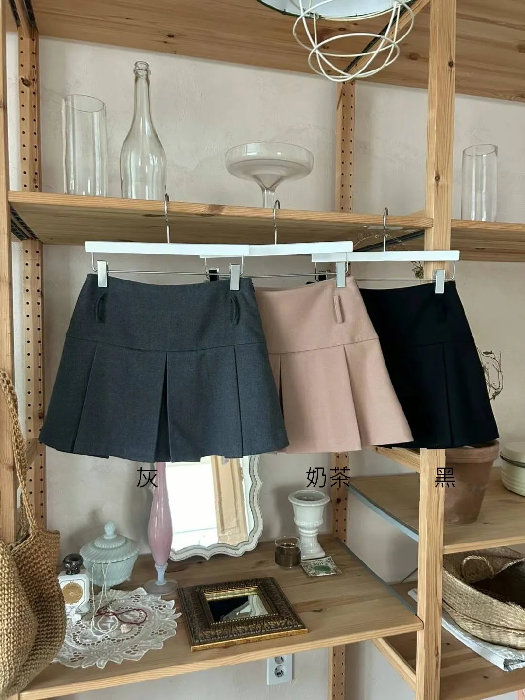 GD295寬百摺短褲裙 灰 黑 奶茶 S M 官網價$1090 線上價$1060