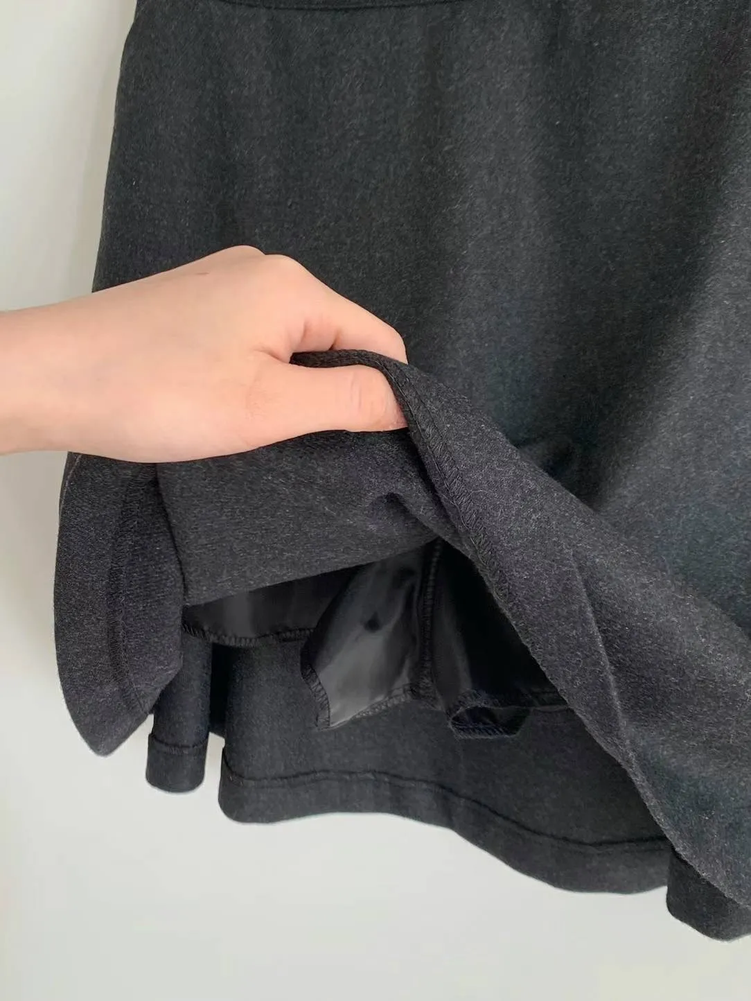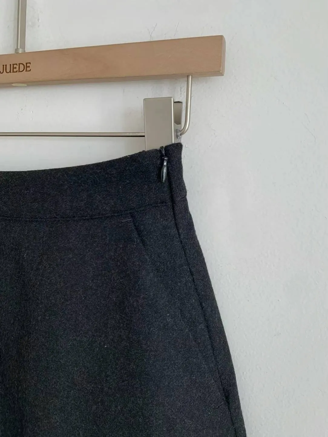 羊毛50%+聚酯 側拉鍊 後鬆緊 自然傘擺 Aline顯瘦 有口袋