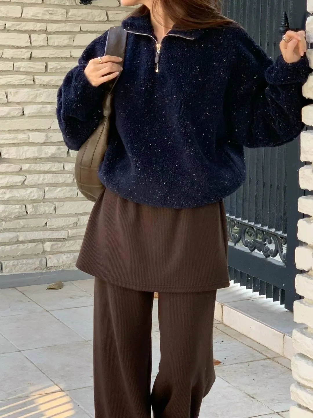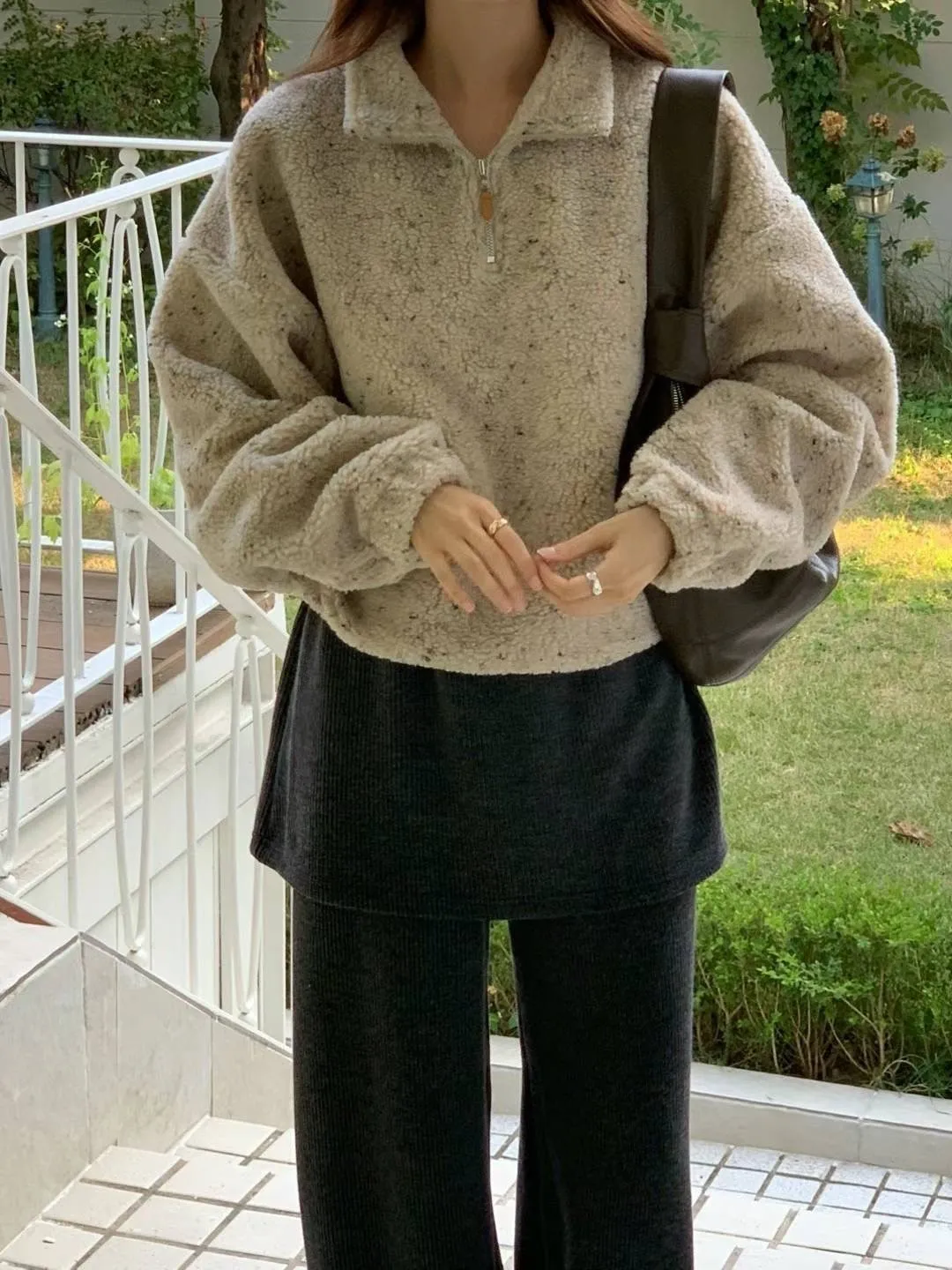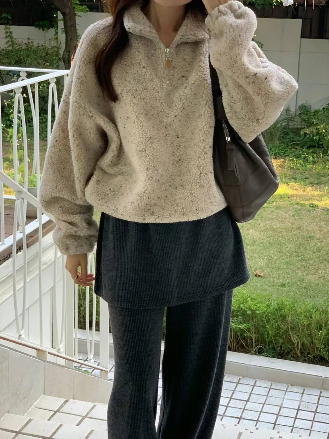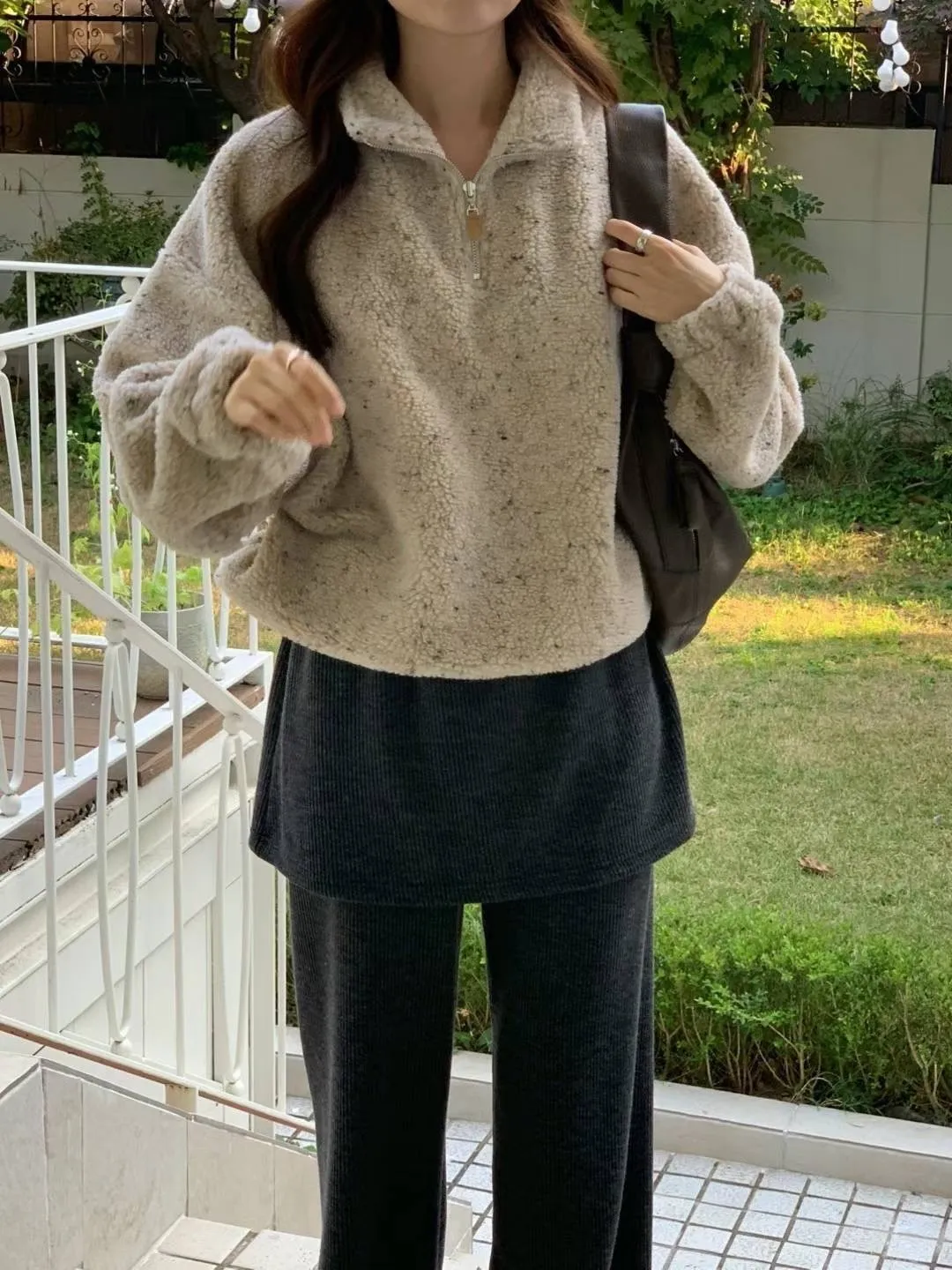 聚酯 拉鍊領 寬鬆舒適 混織時髦毛呢