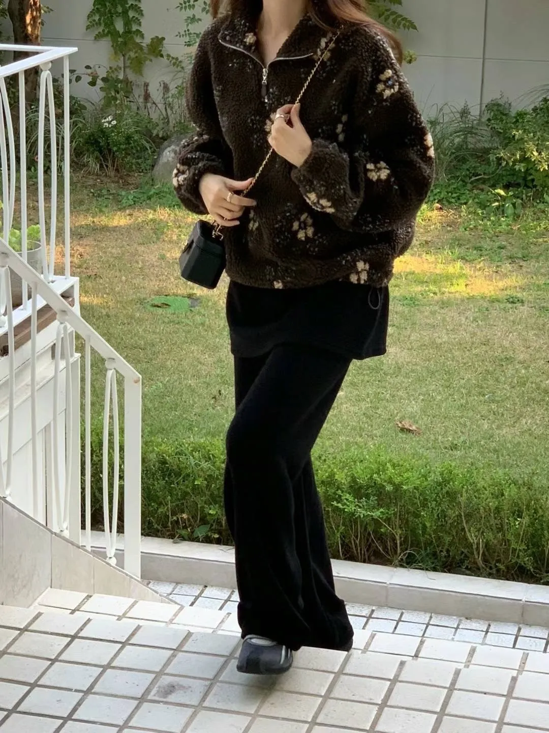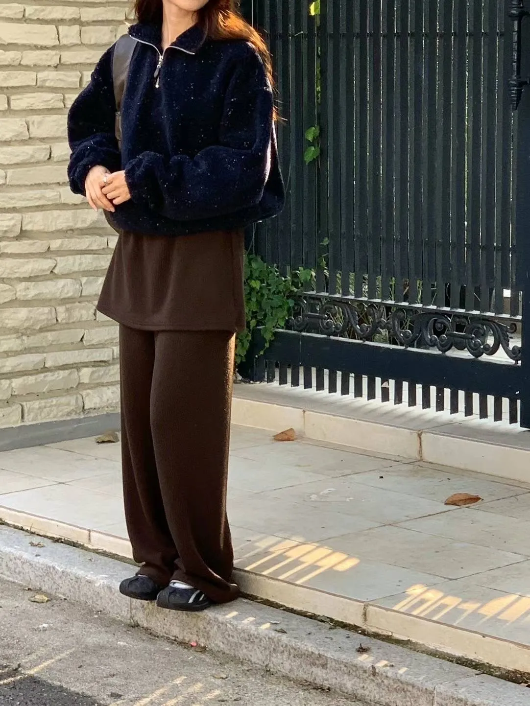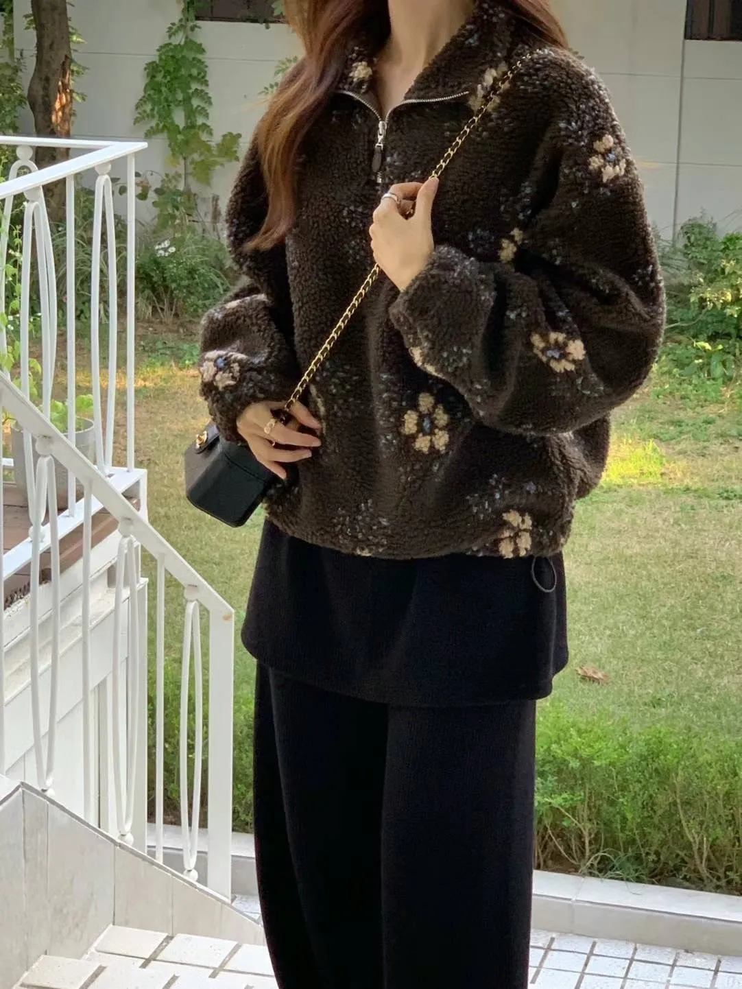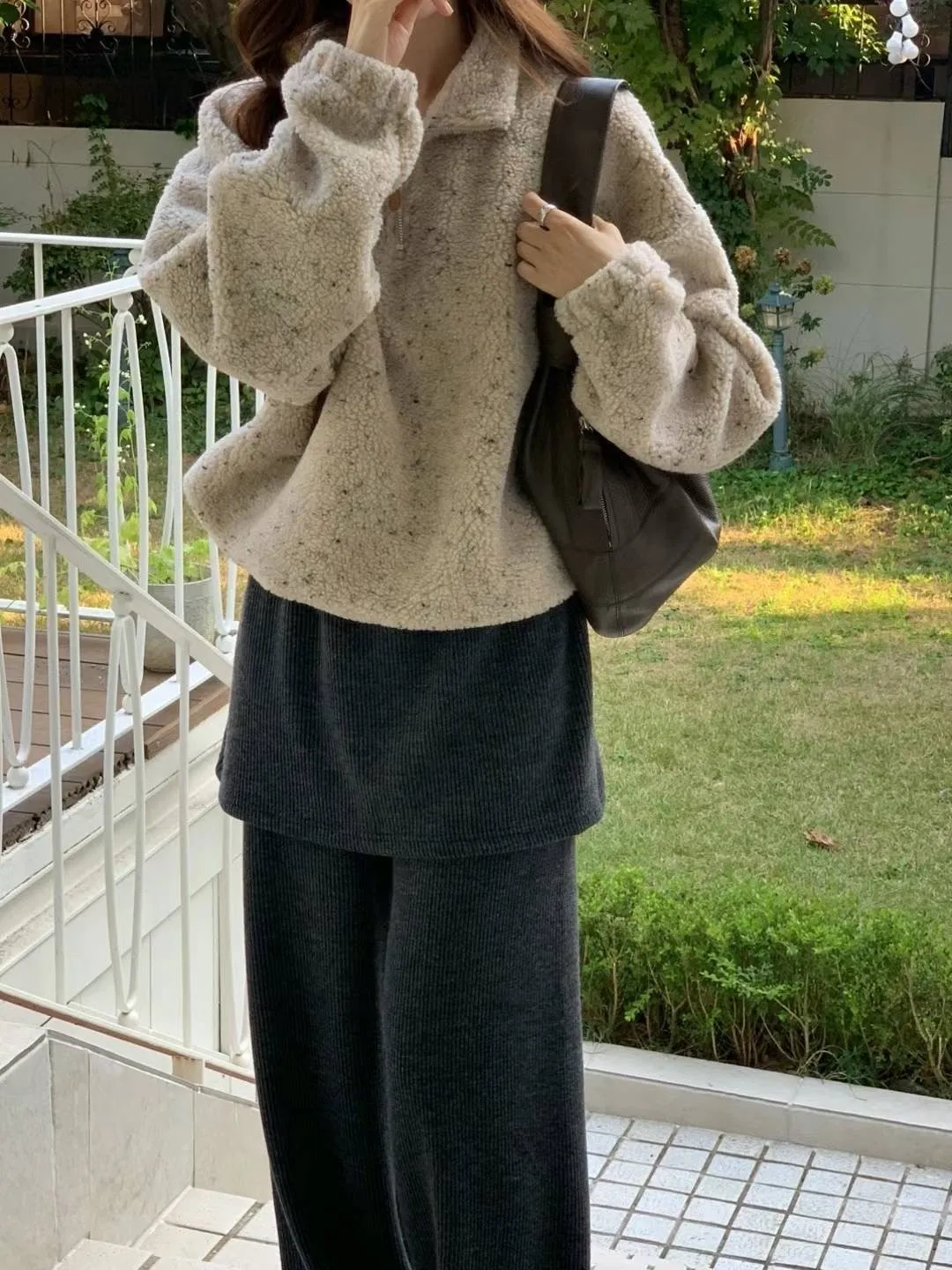 聚酯 拉鍊領 寬鬆舒適 混織時髦毛呢
