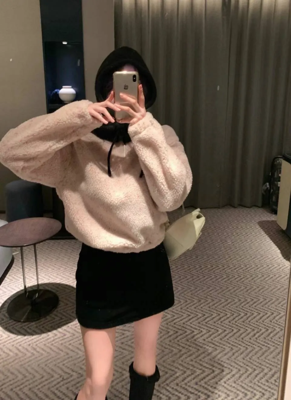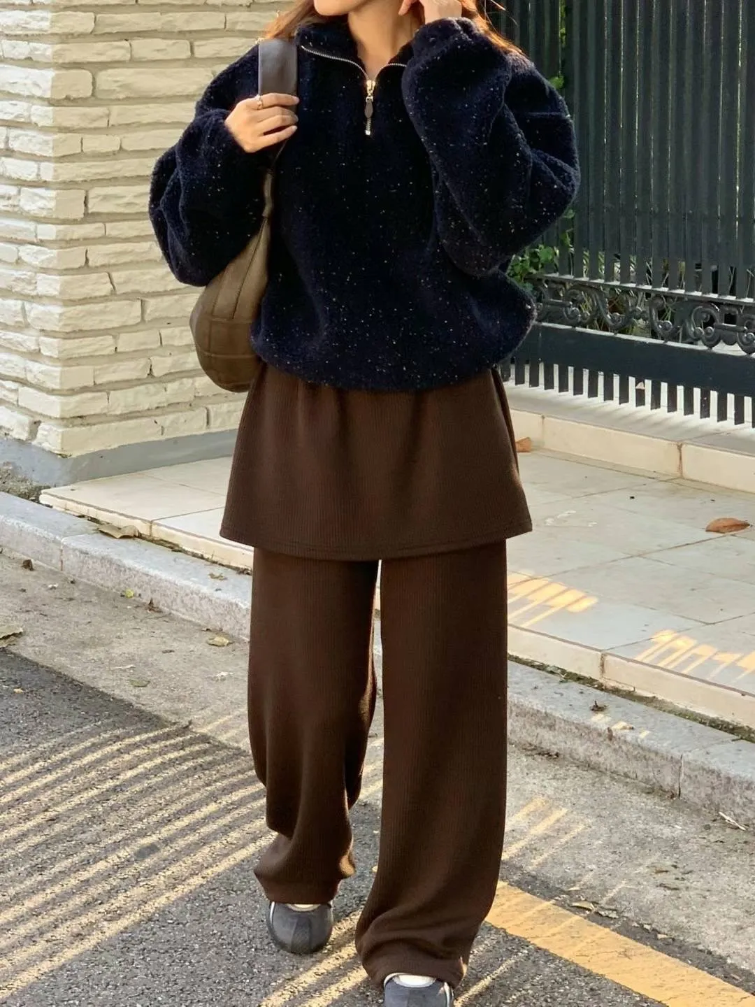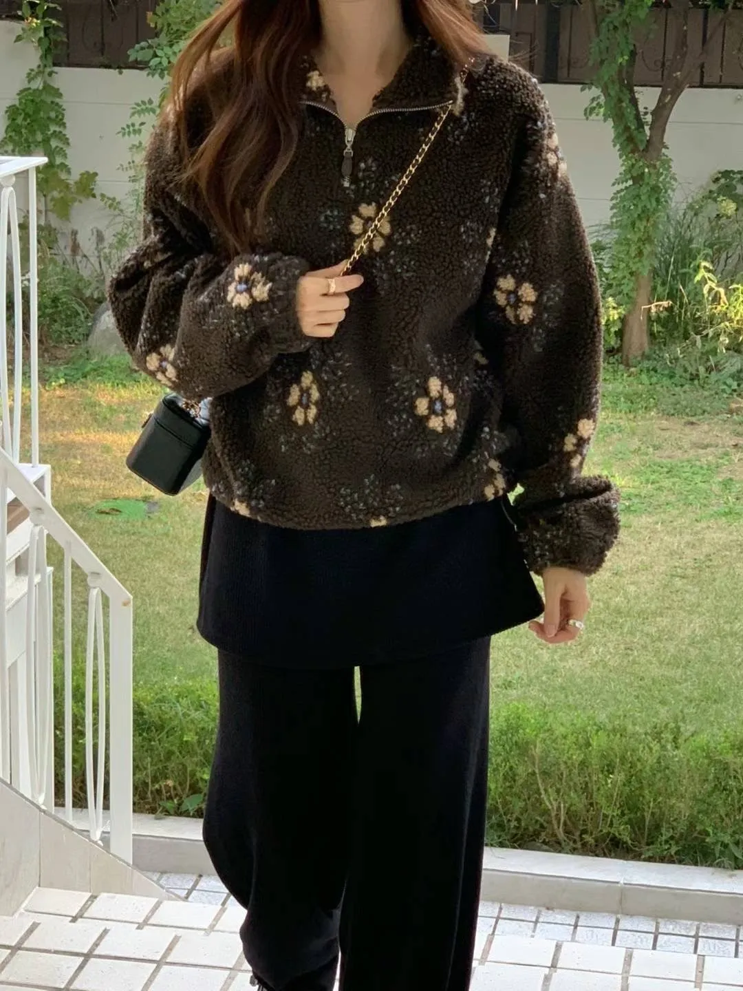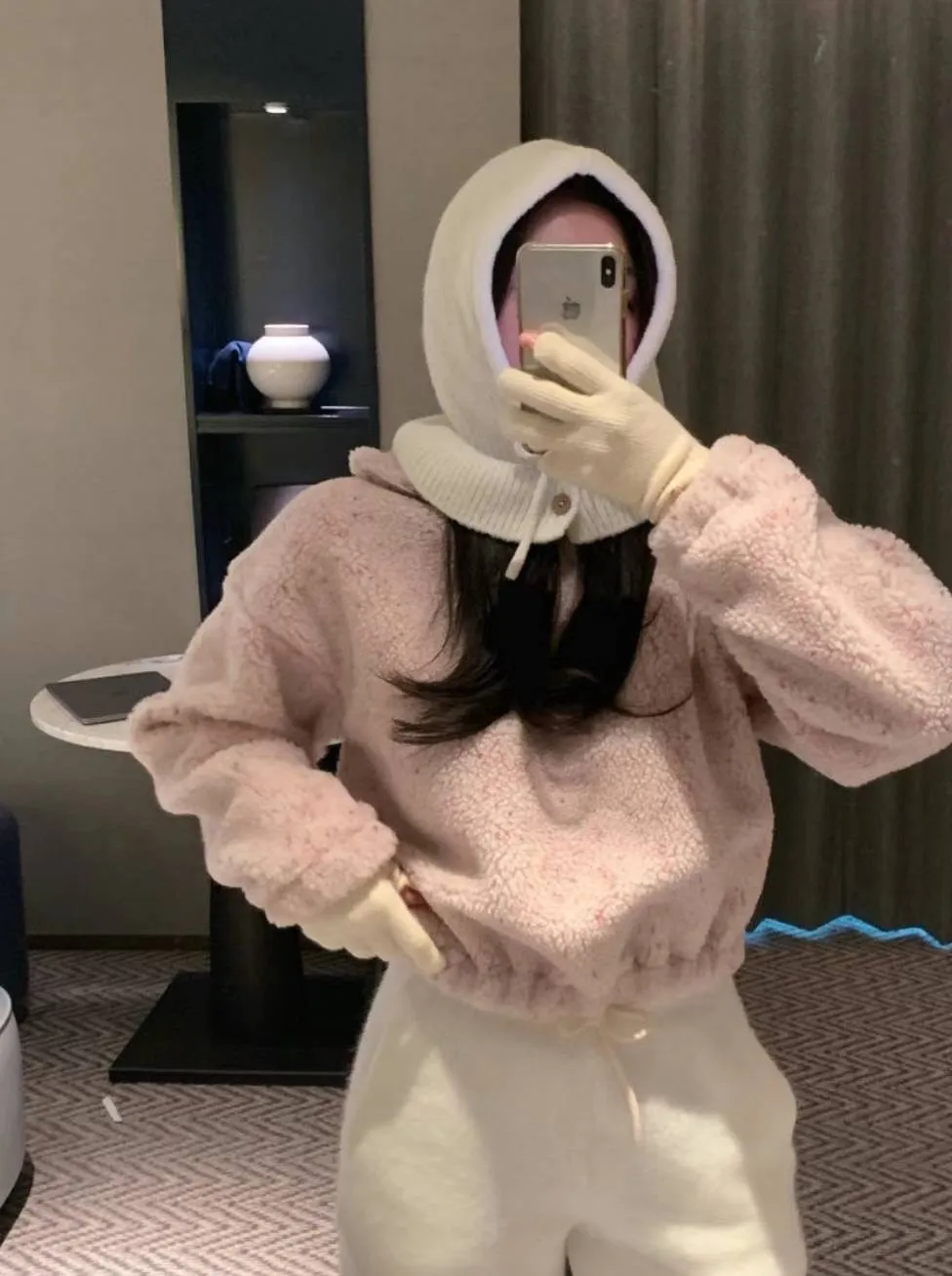 聚酯 拉鍊領 寬鬆舒適 混織時髦毛呢