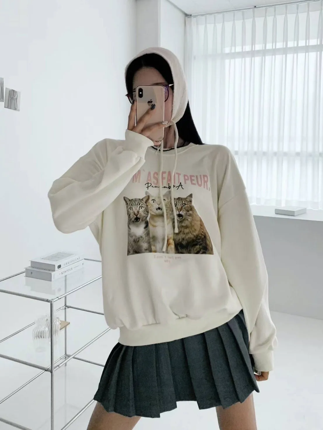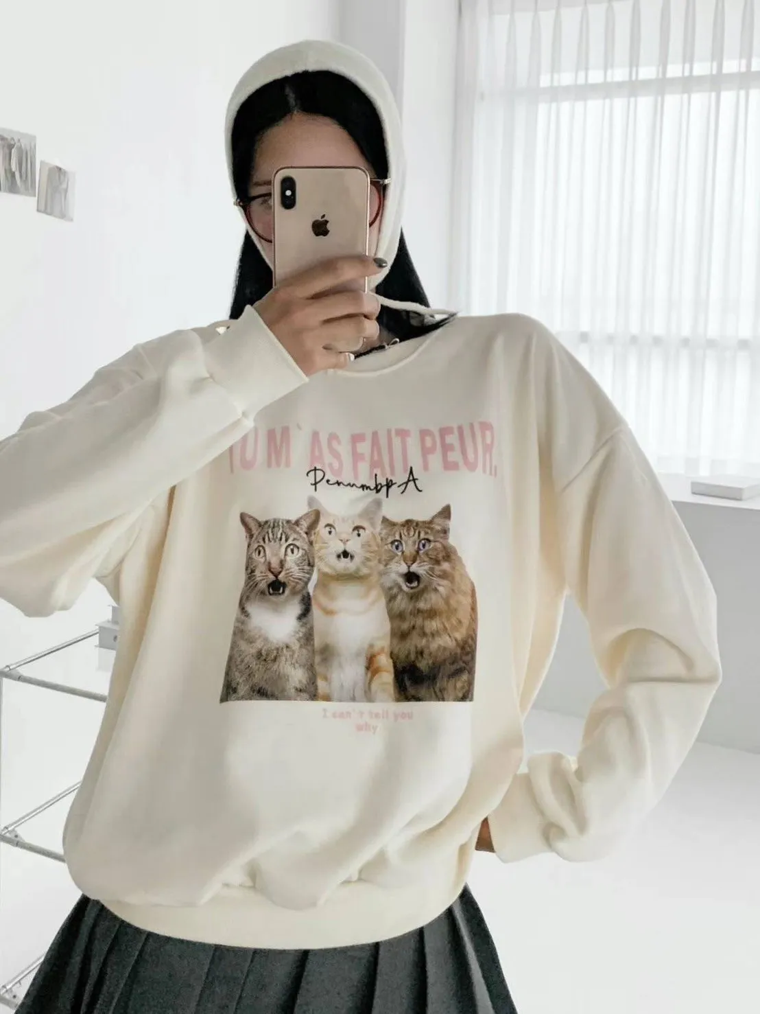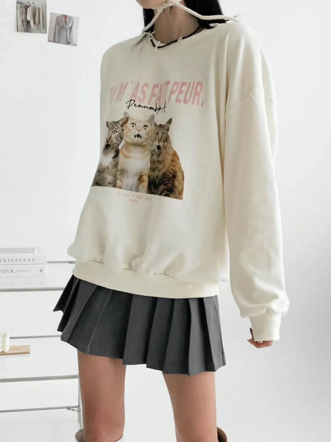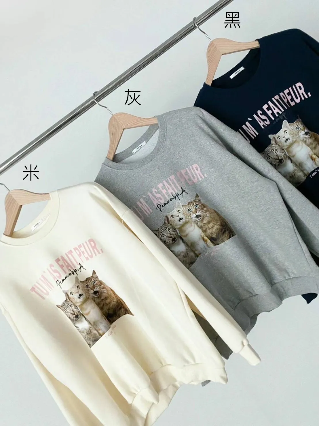 GD416可愛驚訝小貓咪大學T 米 灰 藍 官網價$490 永恆甜甜價$450