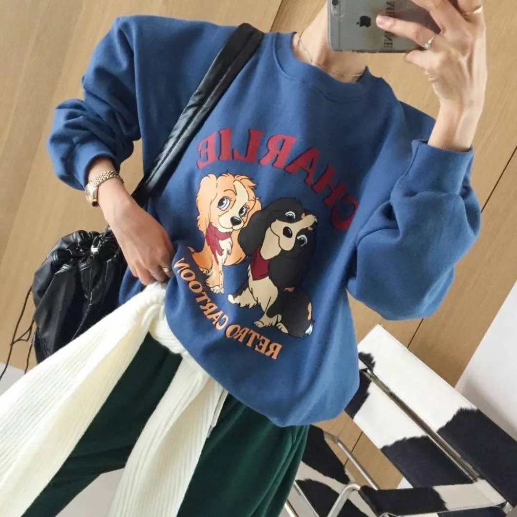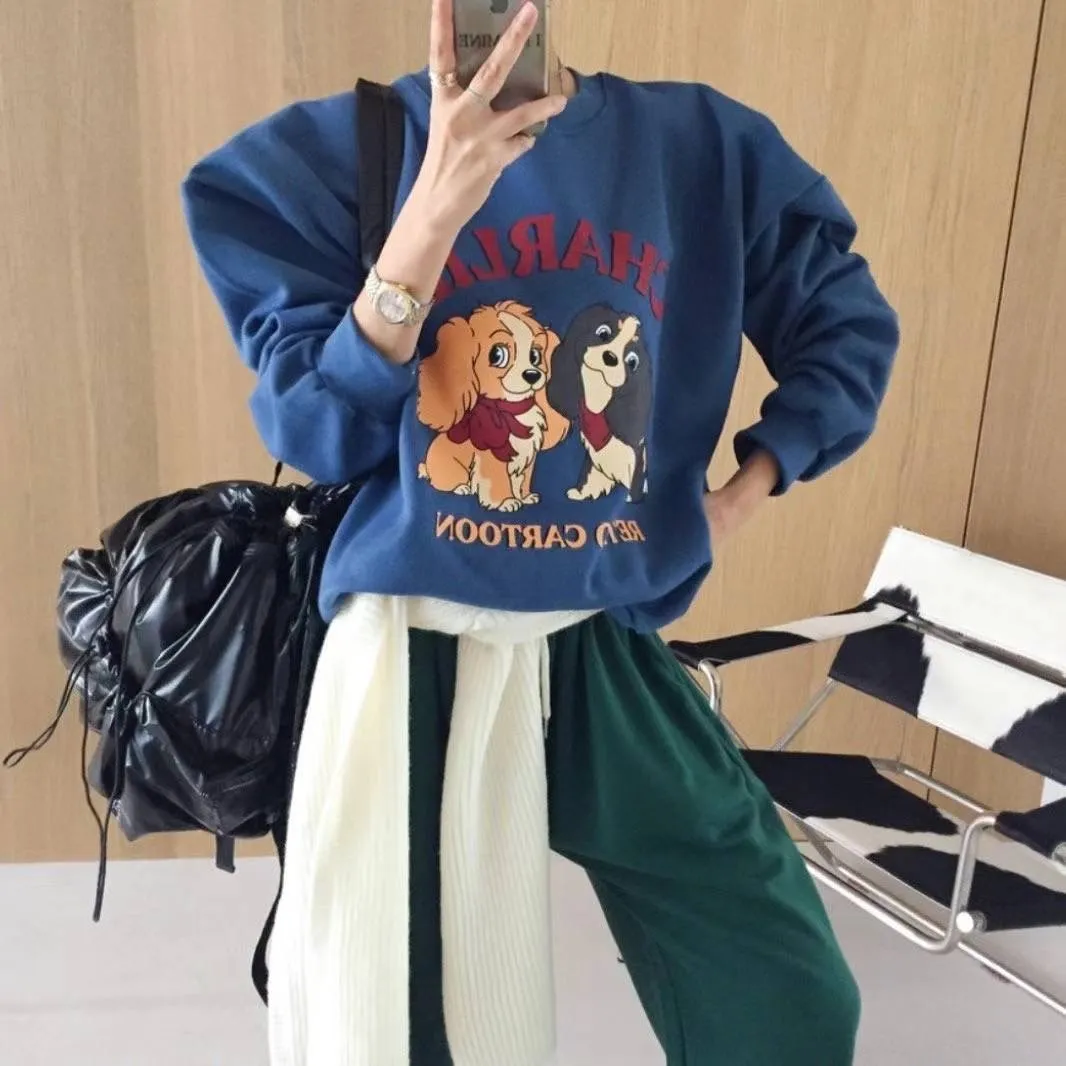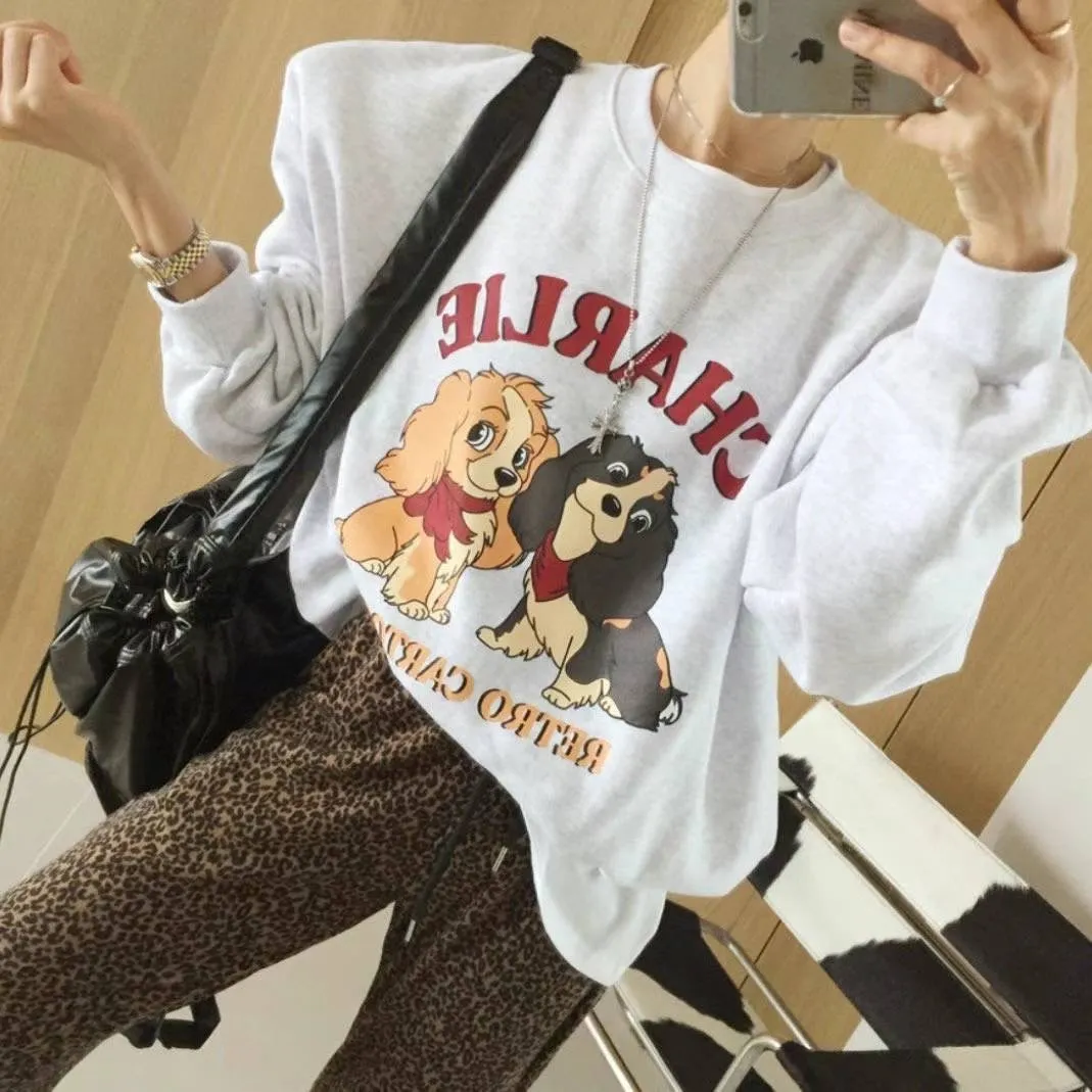 GD418可愛微笑狗狗大學T 白 藍 墨 官網價$470 永恆甜甜價$430