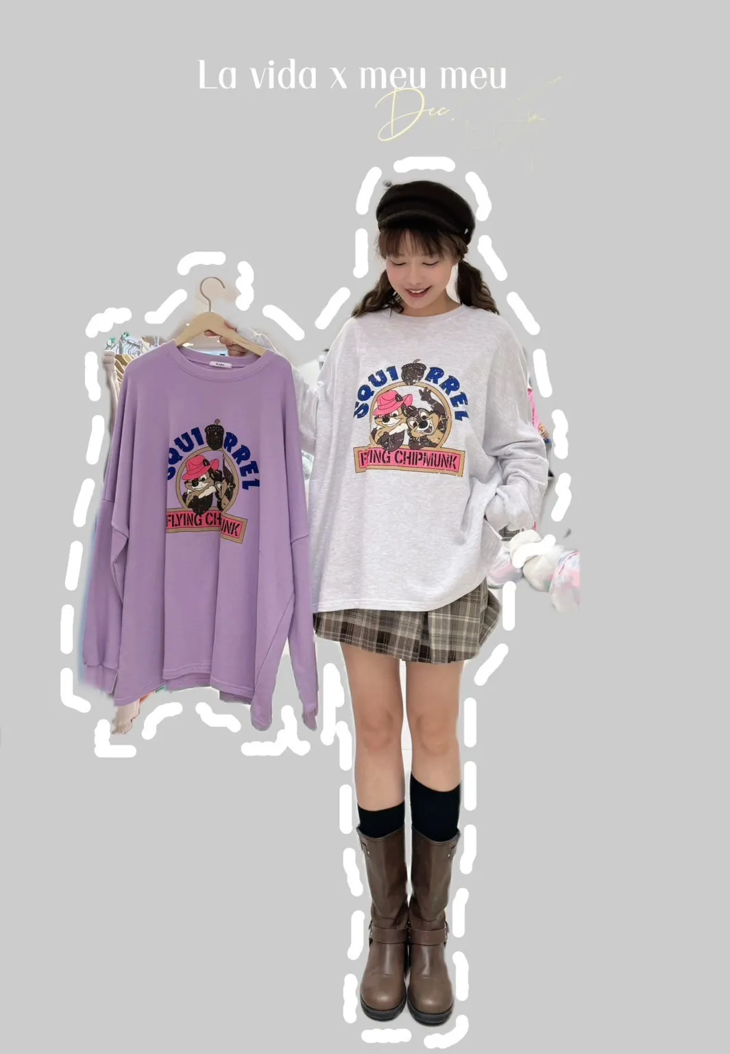 GD422仿舊奇奇蒂蒂大學T 灰 紫 官網價$500 永恆甜甜價$460