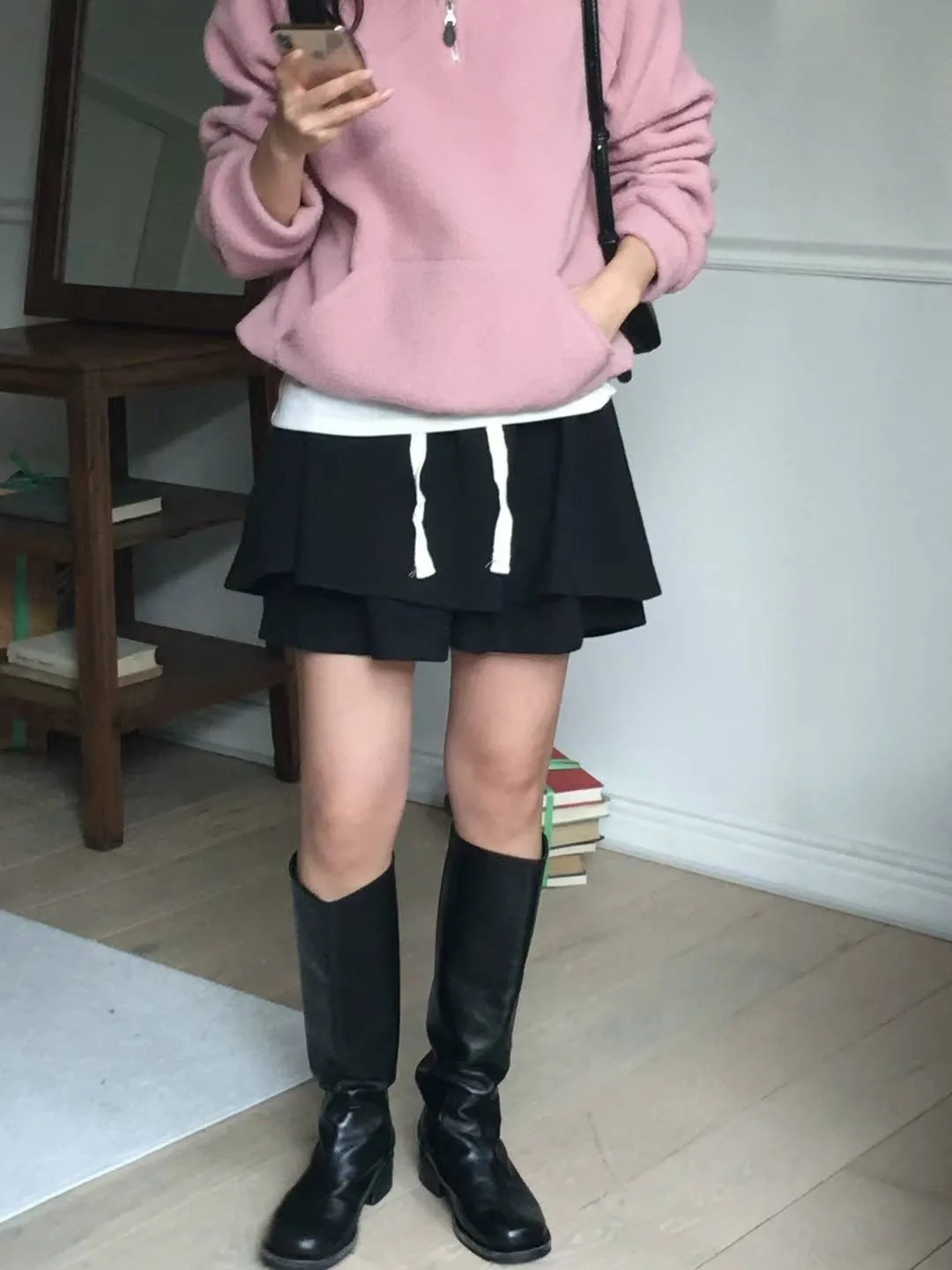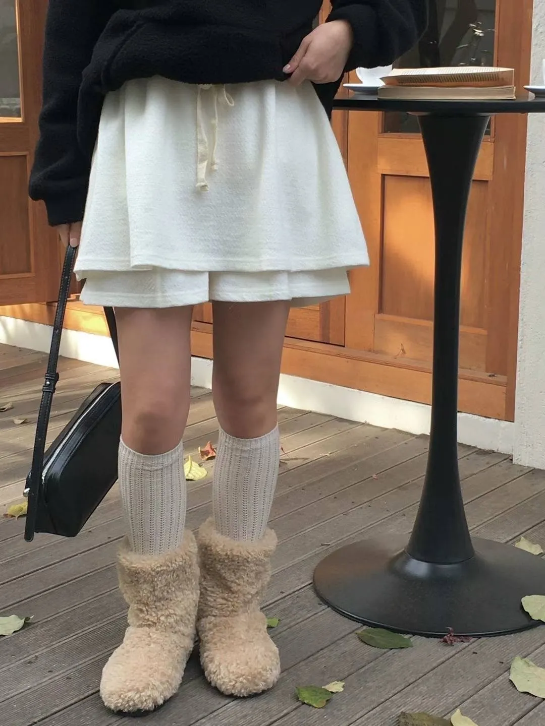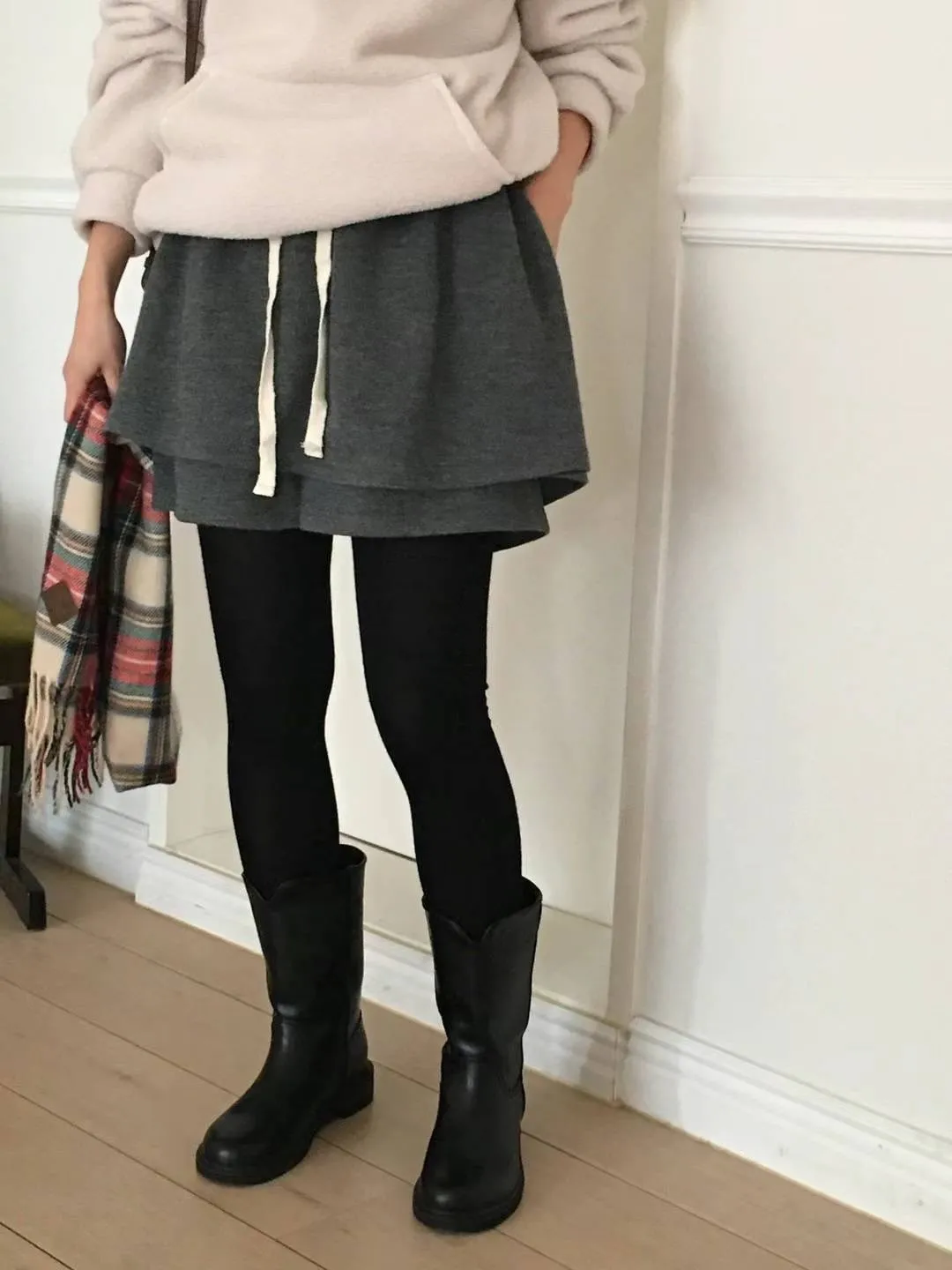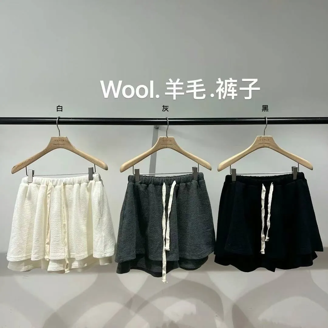 羊毛20% 全腰鬆緊有抽繩 是褲裙 有內裡不刺癢 針織紋理 有口袋
