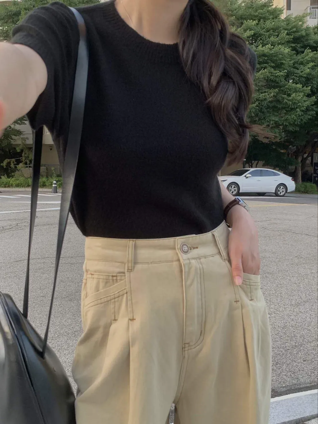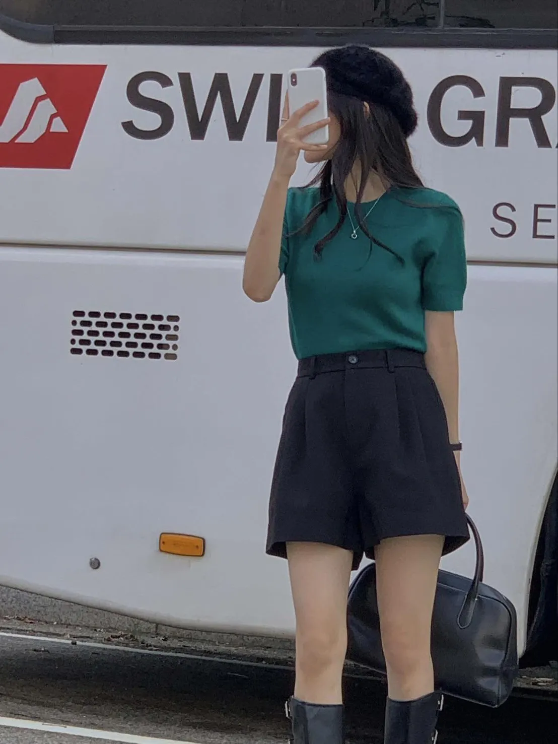 GD543特價短版針織短袖上衣 綠 黑 特價$399