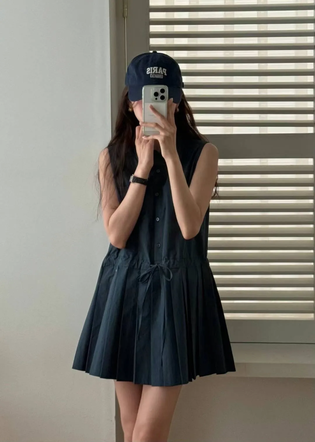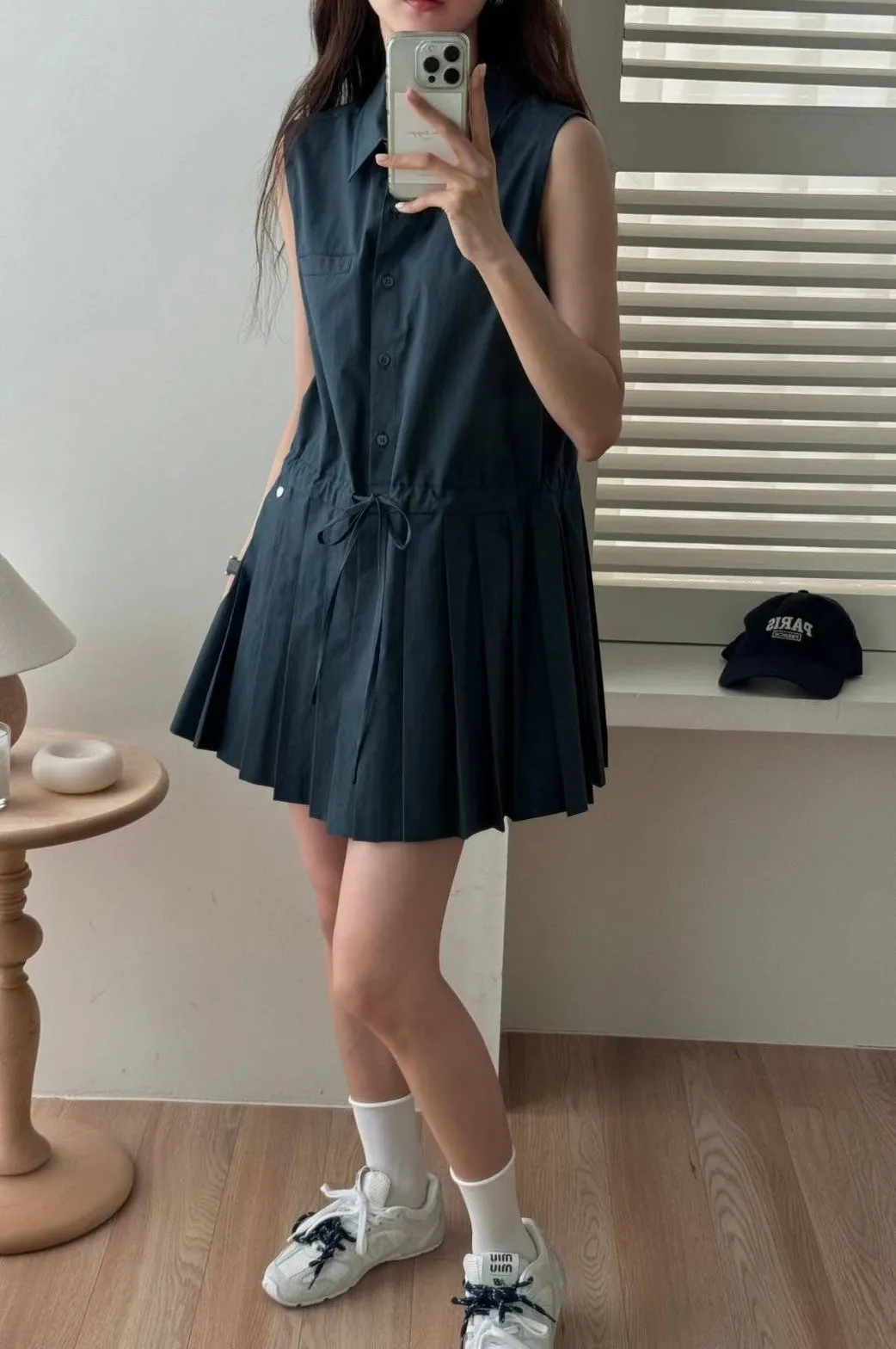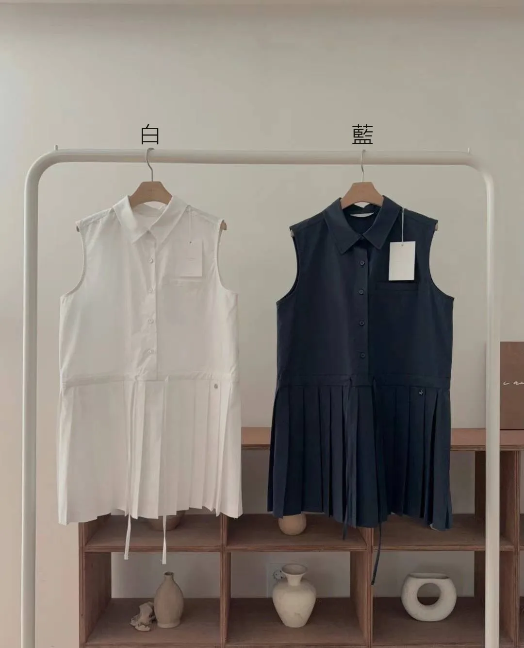 棉 挺版面料 排釦穿脫 腰線抽繩 百摺裙 無口袋 有內裡