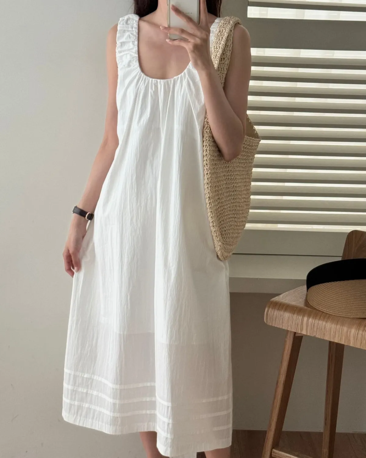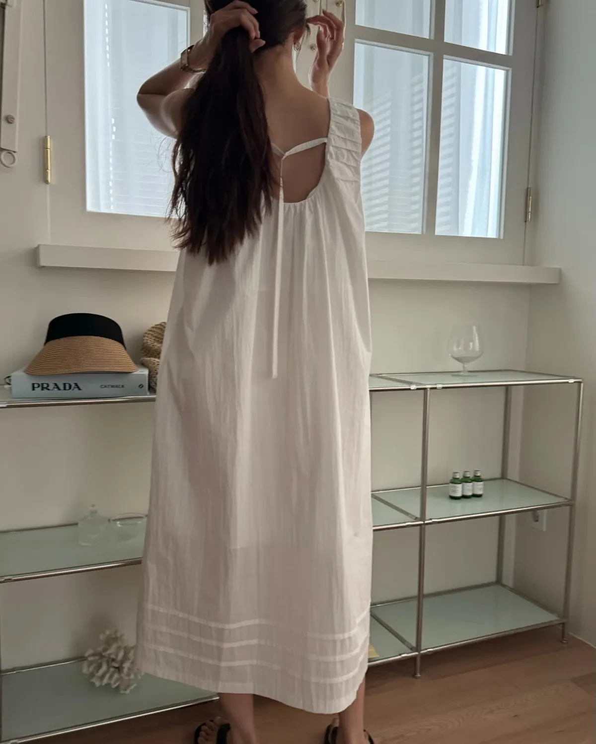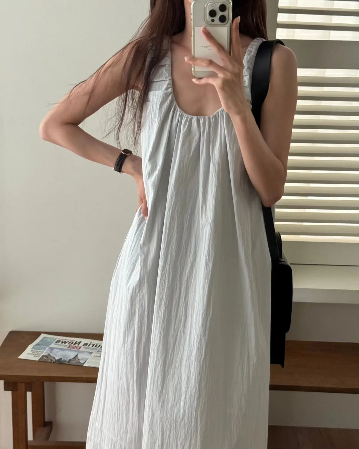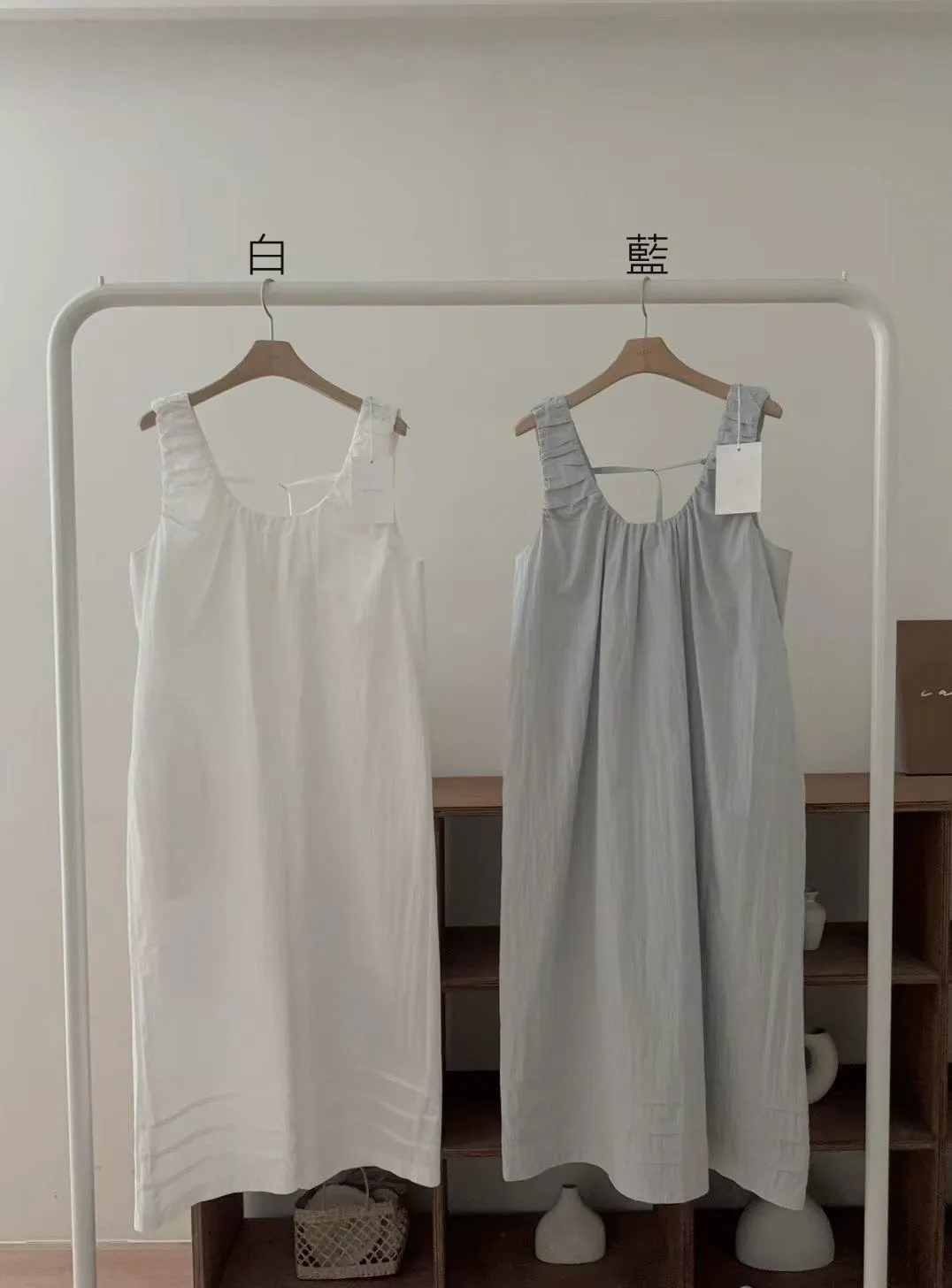 棉+尼龍 慵懶抓皺寬肩帶 美背綁帶 有口袋 輕盈質地 有內裡