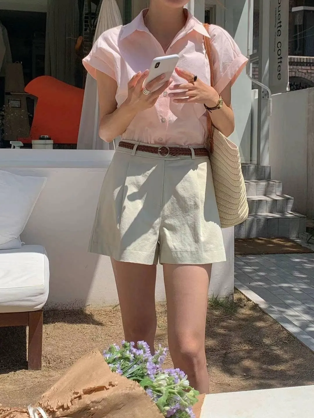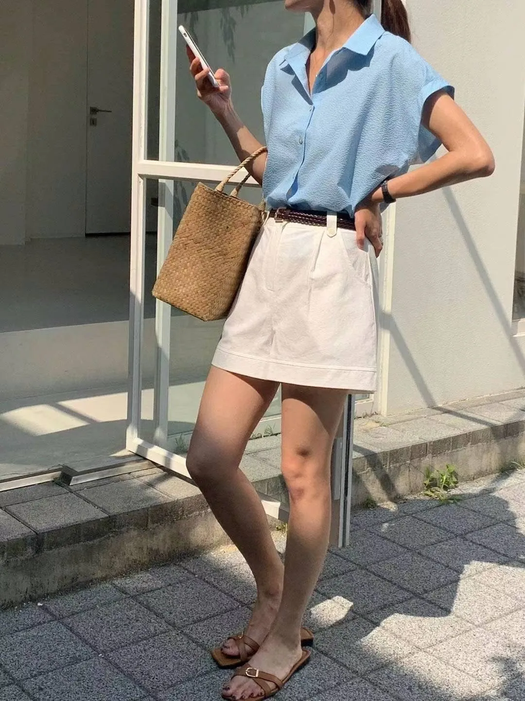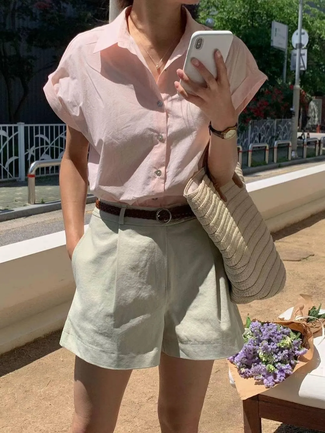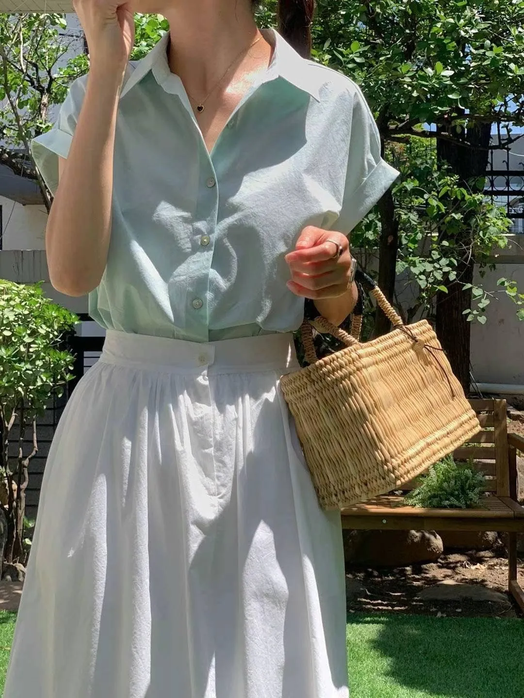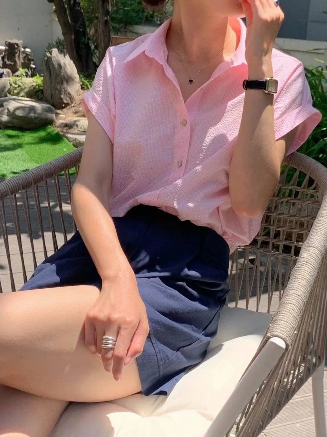 果綠 深藍 粉 全白,棉,滑順觸感 日常不易皺 洗後須整燙