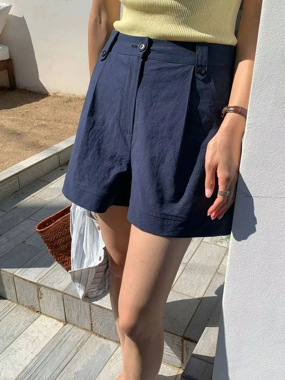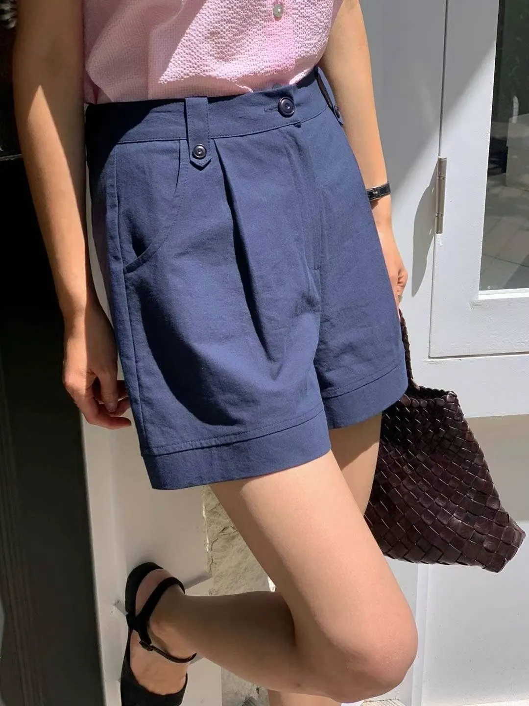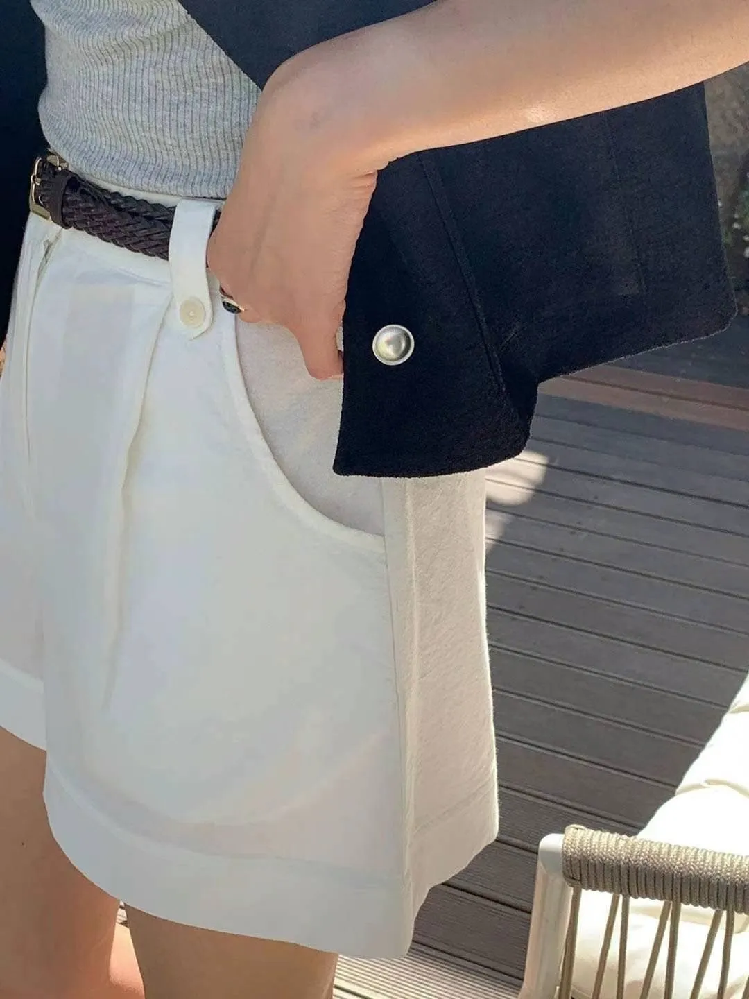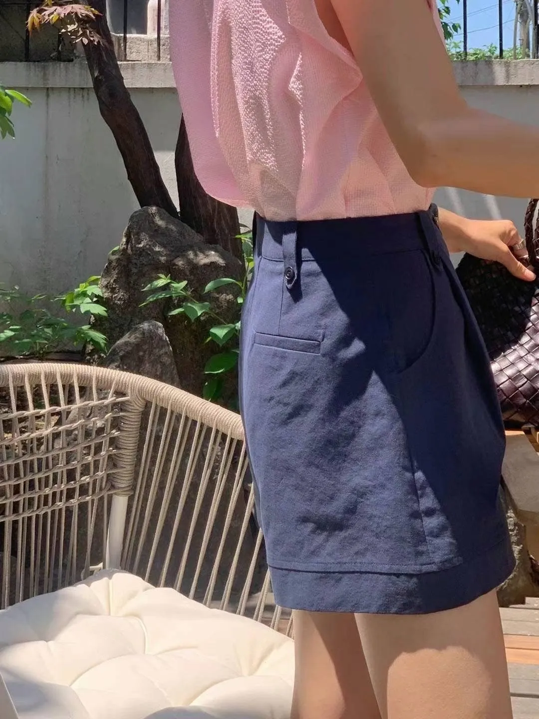棉 質感佳 極薄款 舒適體感 裝飾釦腰耳 釦鍊穿脫 有口袋
