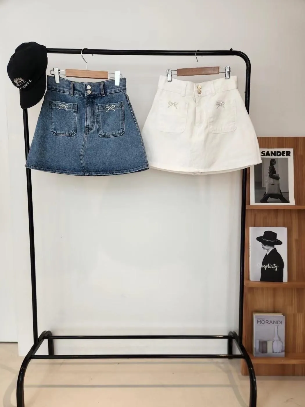 牛仔丹寧 可愛蝴蝶結 釦鍊穿脫 是褲裙