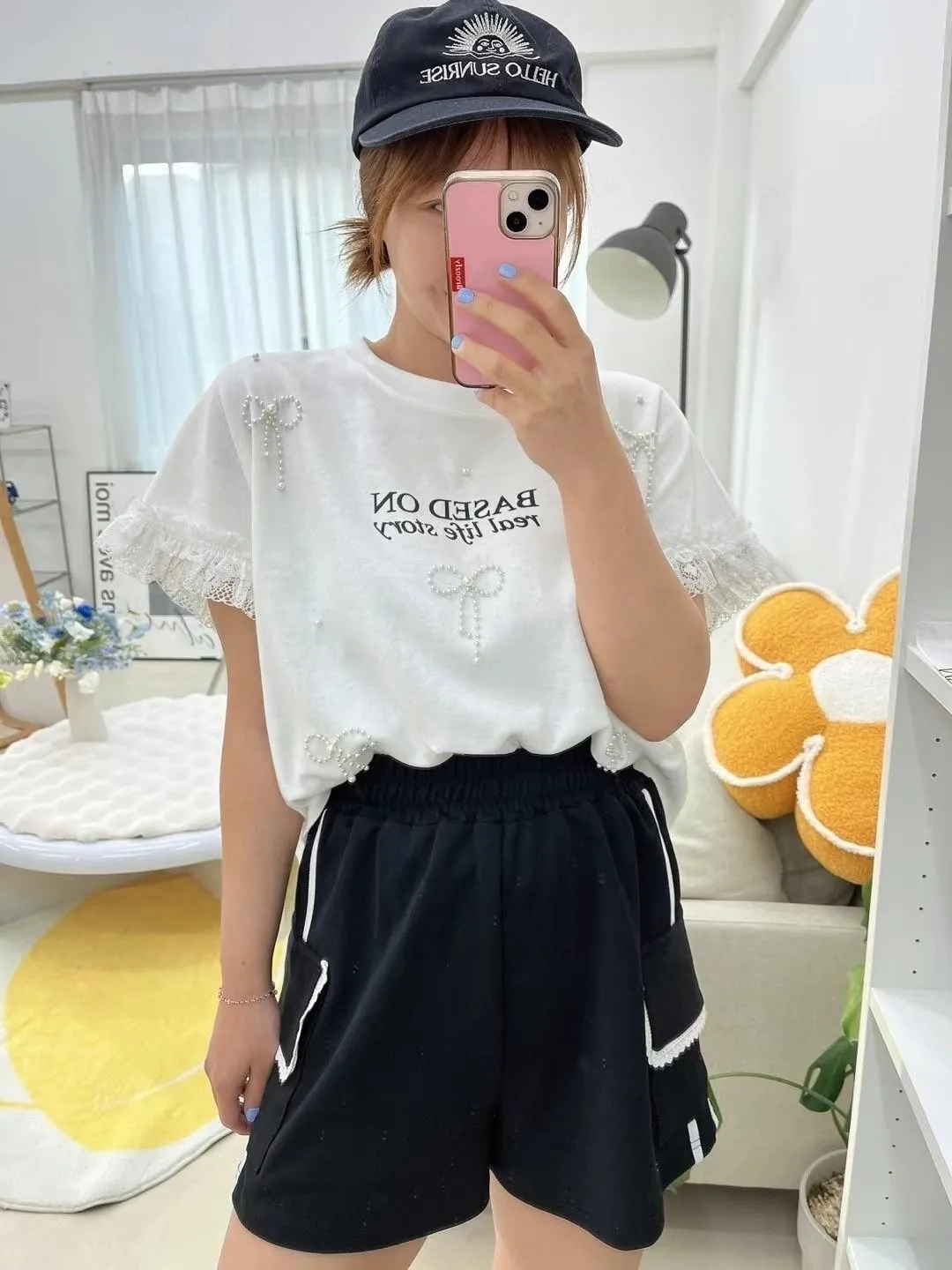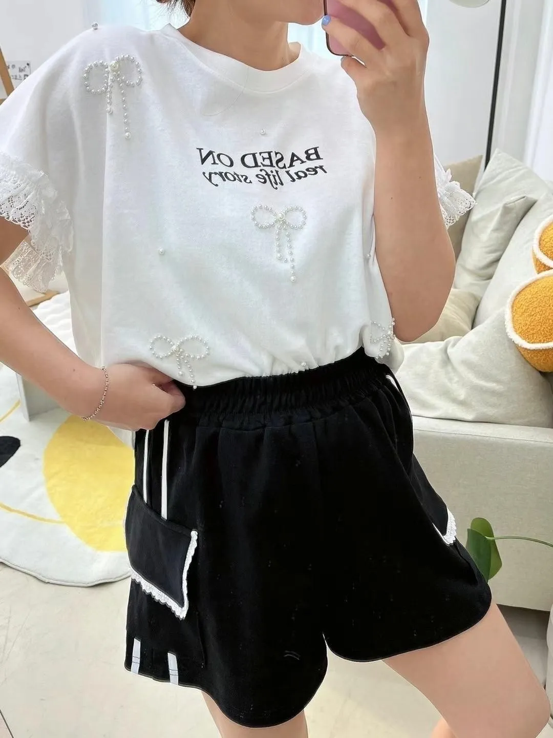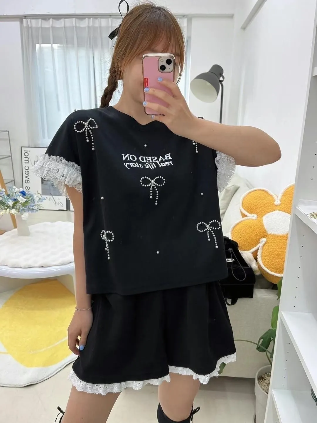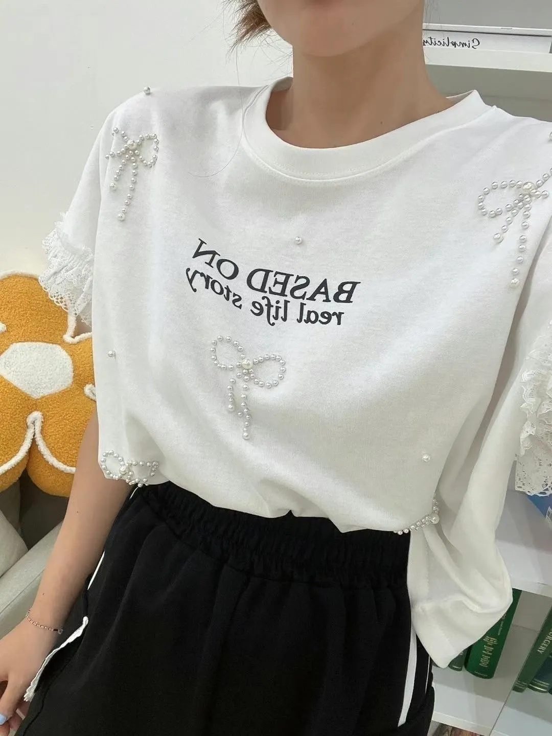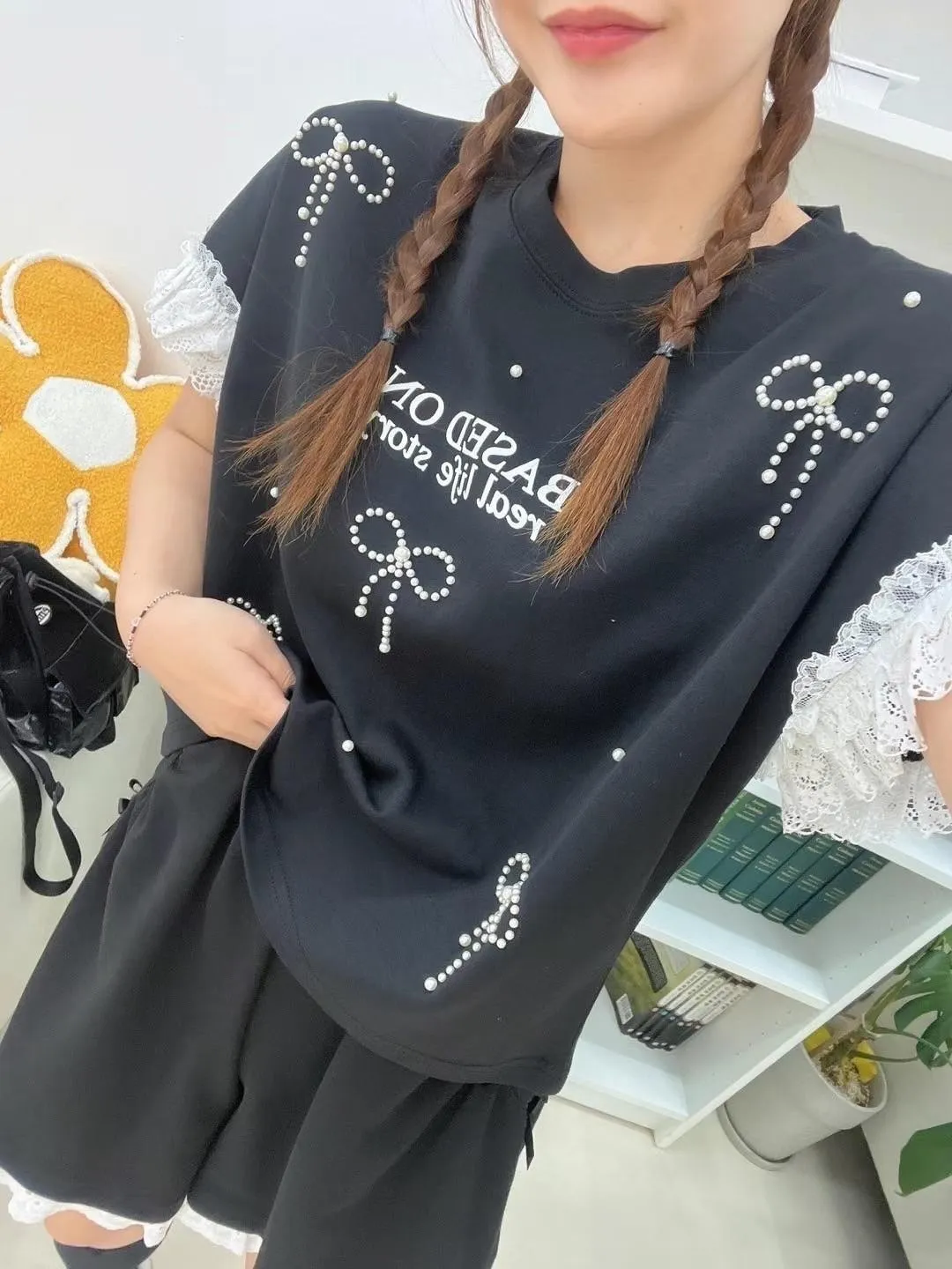 棉+蕾絲 立體蝴蝶結 柔軟袖口蕾絲 親膚透氣 空間佳