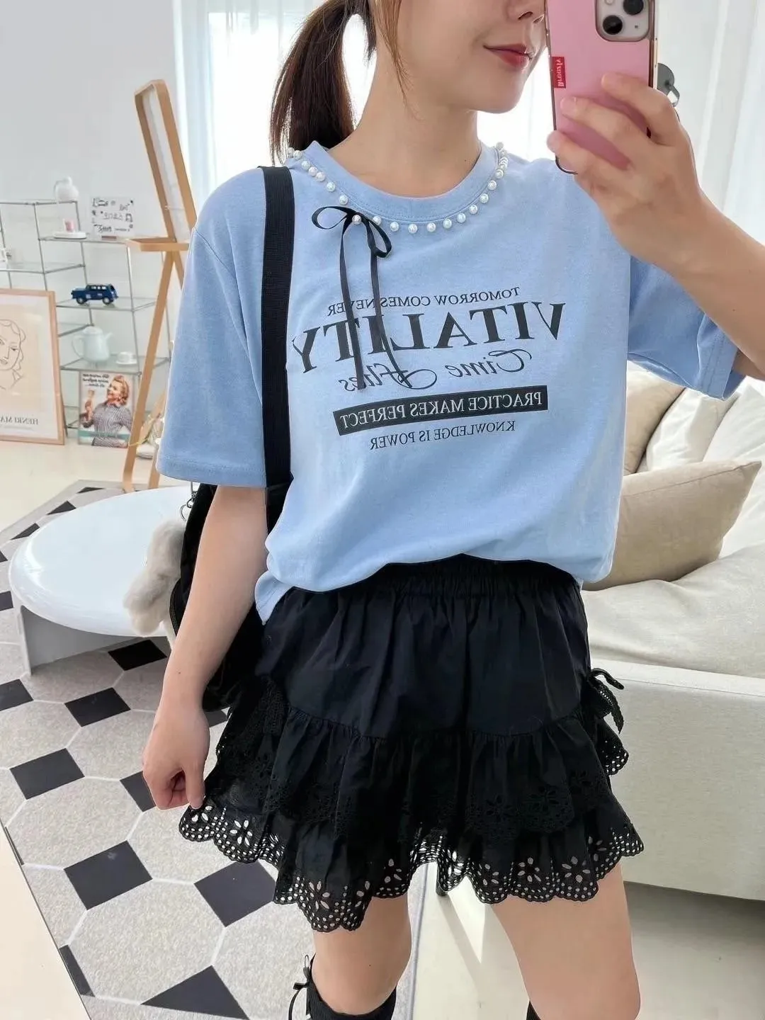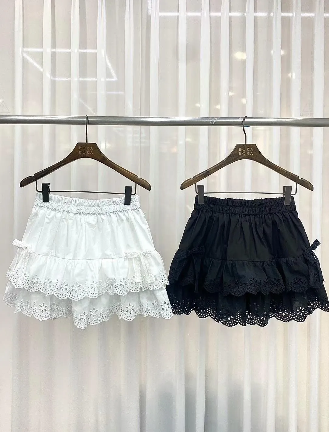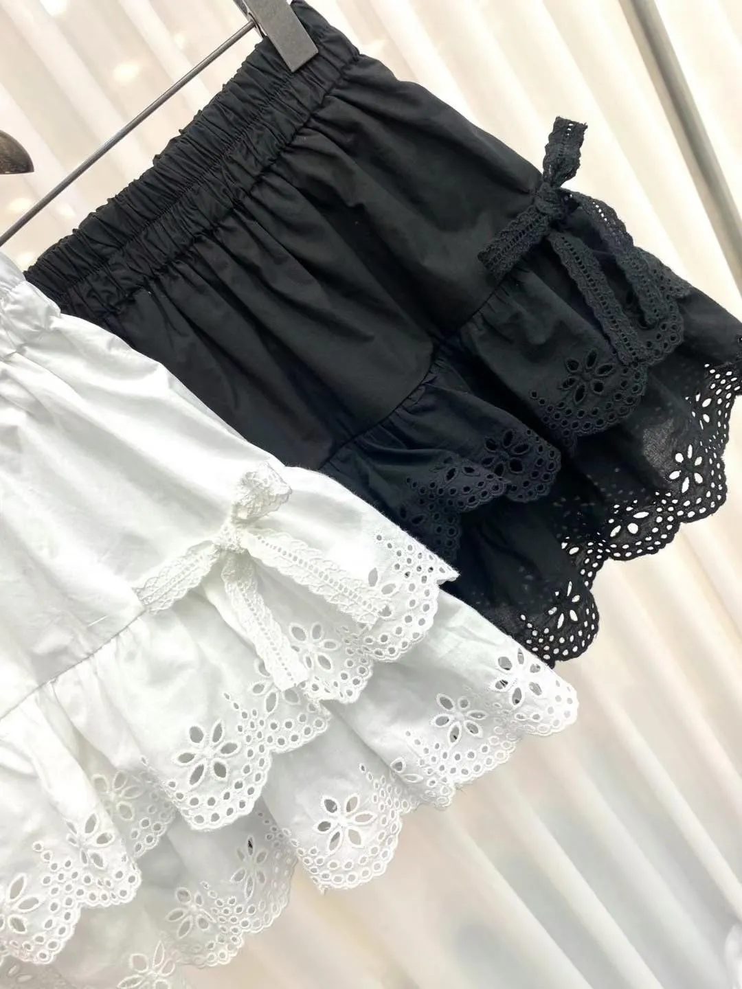 棉+聚酯 全腰鬆緊 蕾絲蝴蝶結 簍空燒花下擺 穿到M號 是褲裙