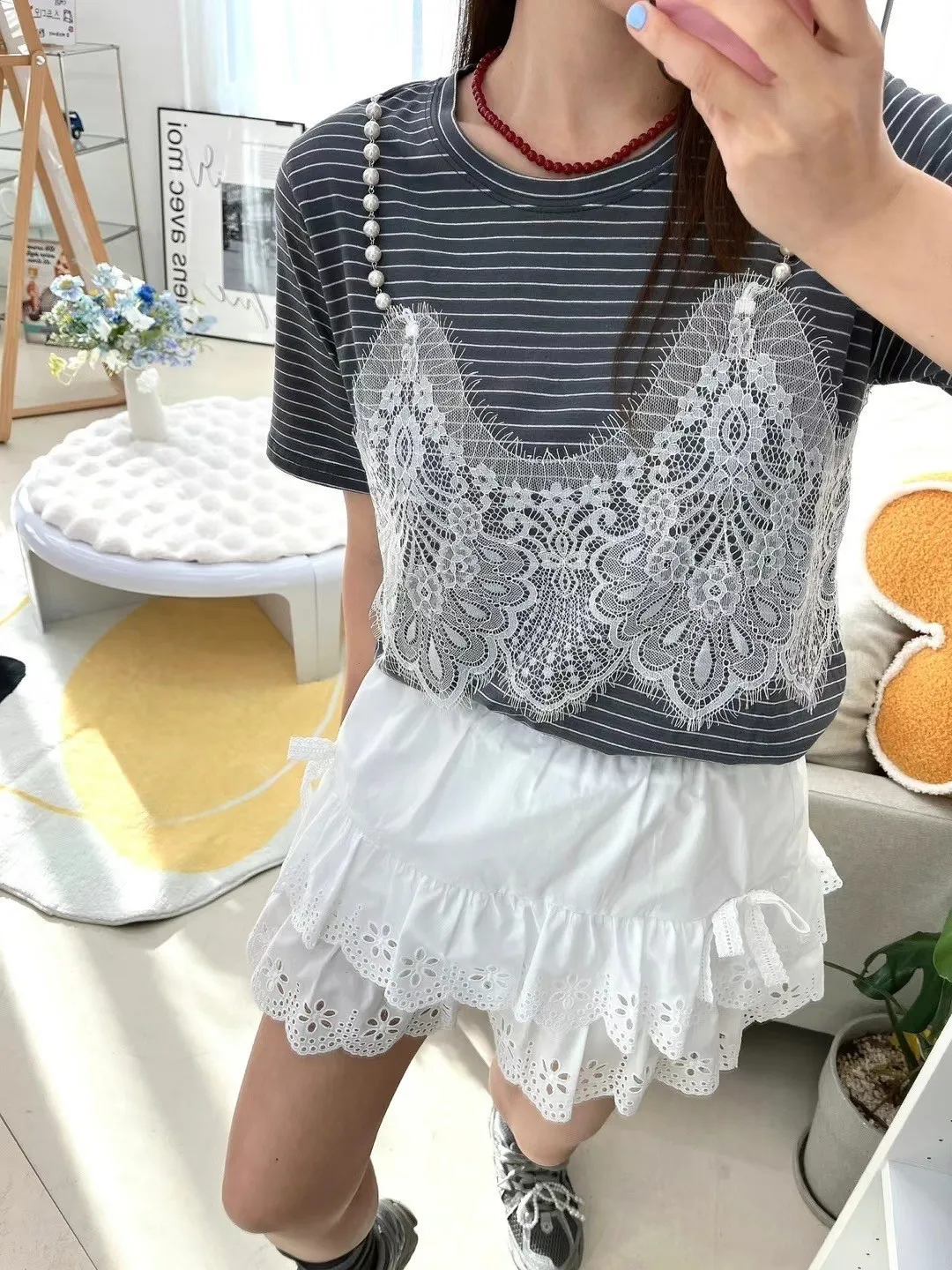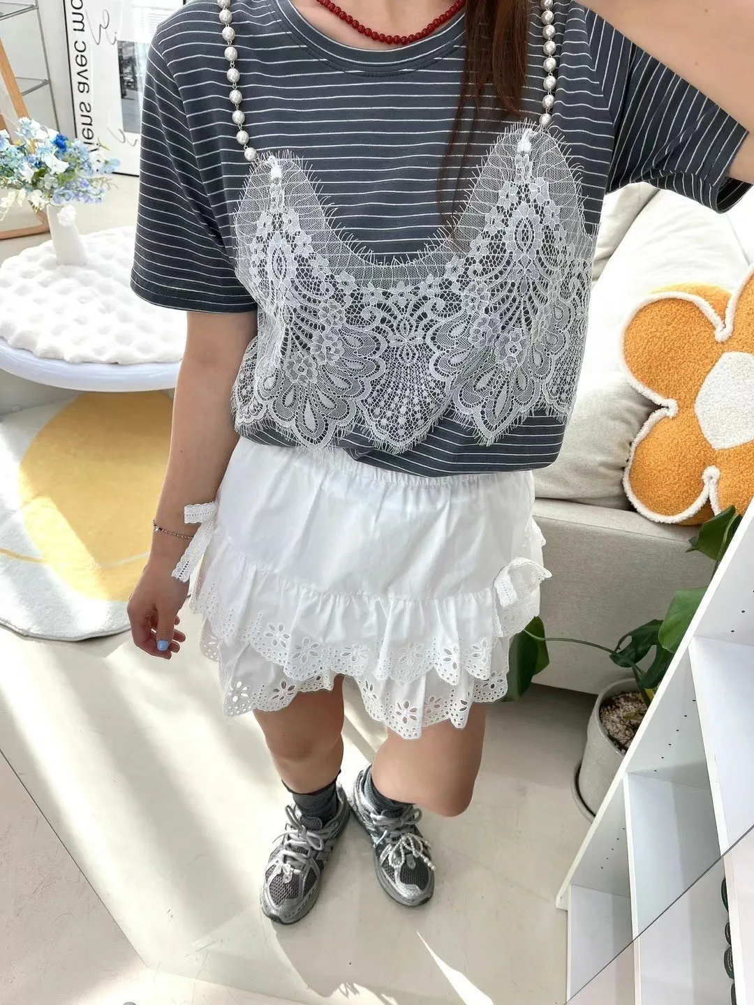棉+睫毛蕾絲+珍珠肩帶 薄款涼感舒適棉 適合夏天
