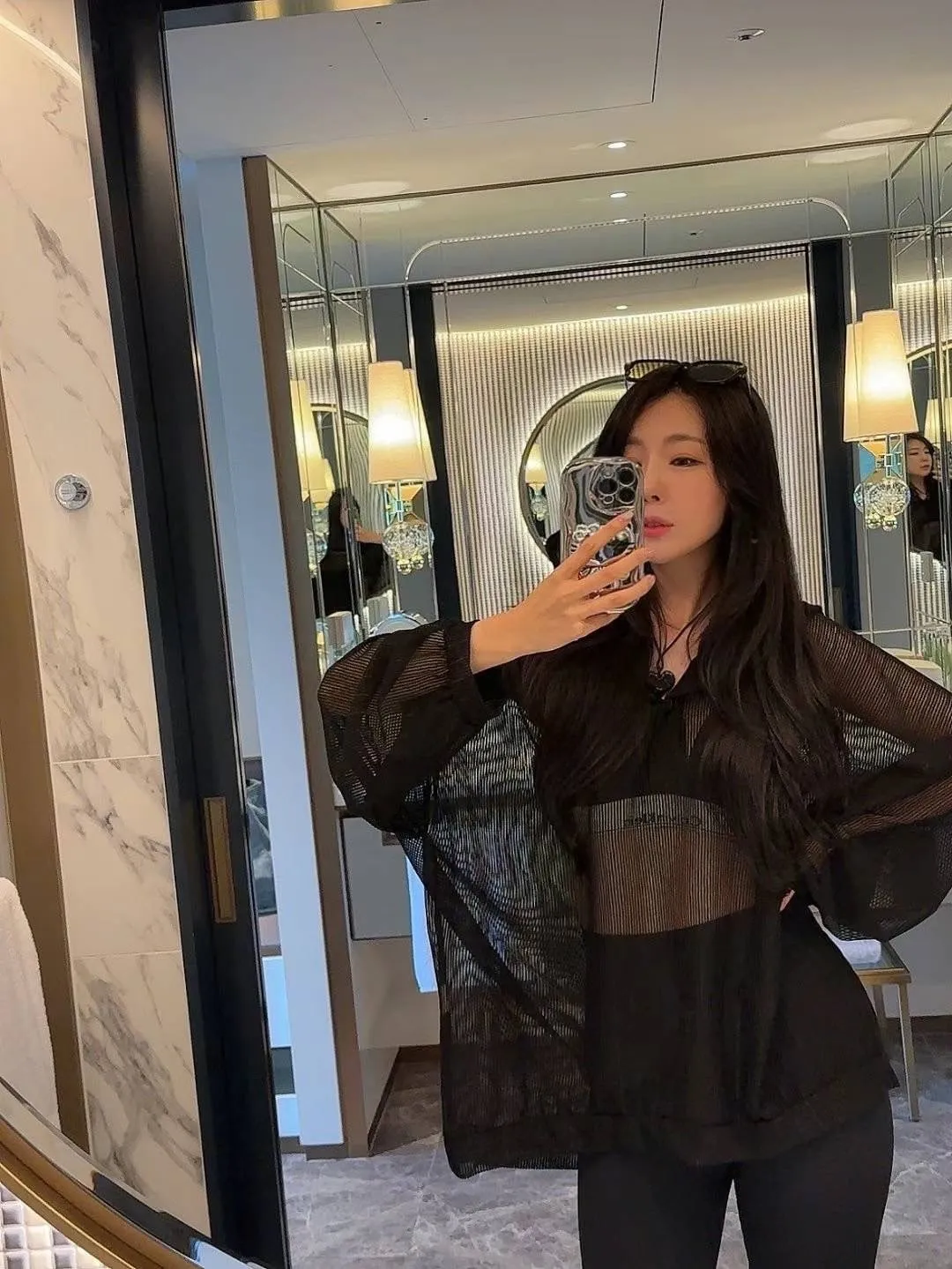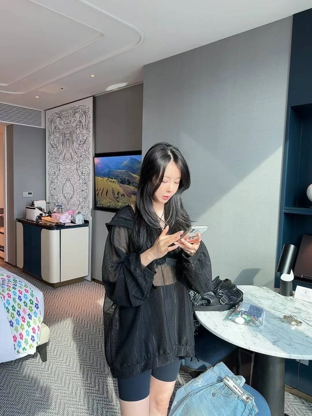 聚酯+彈力,薄款輕盈 可愛裝飾釦 防曬透光