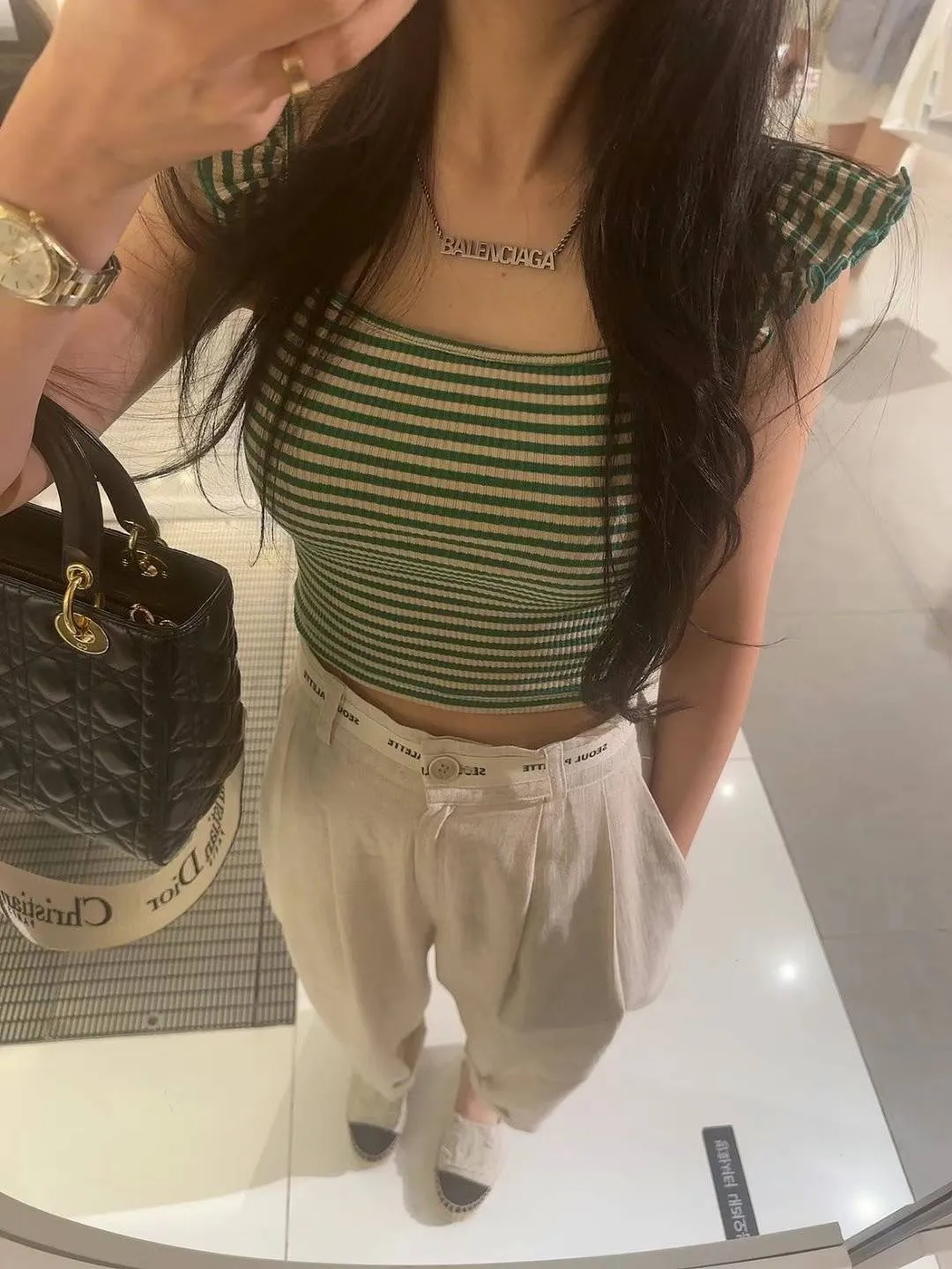 GG269設計感美袖條紋上衣 綠 黑 官網價$620 線上價$590