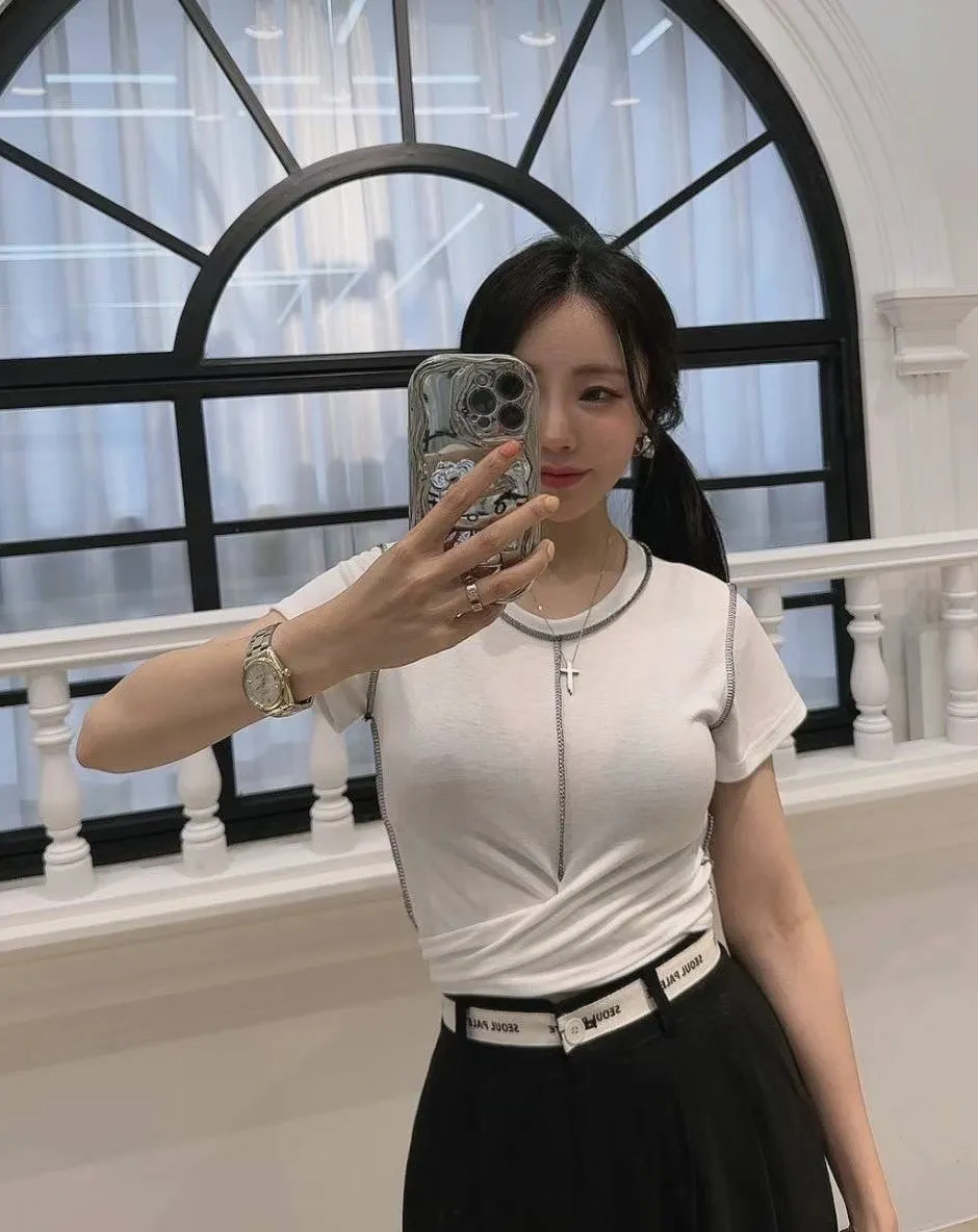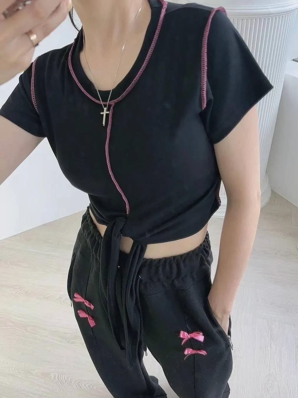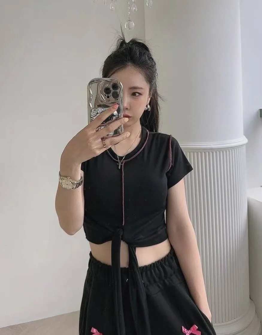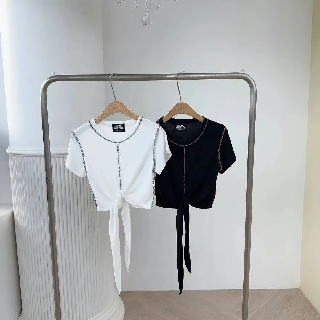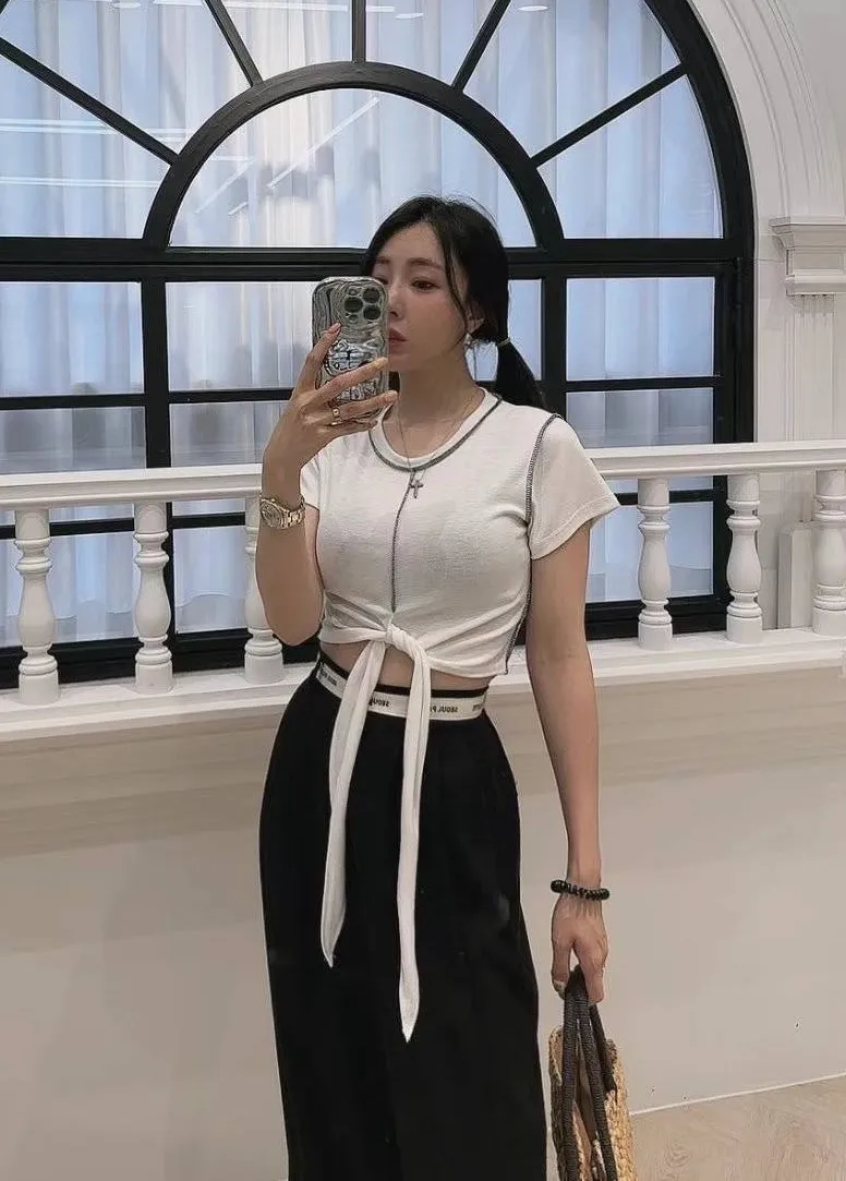 GG270莫代爾跳色車線腰綁帶上衣 白 黑 官網價$550 線上價$520