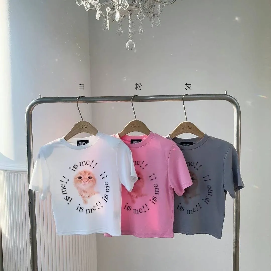 GG272可愛大頭貓短版Tshirt 白 粉 灰 官網價$570 線上價$540