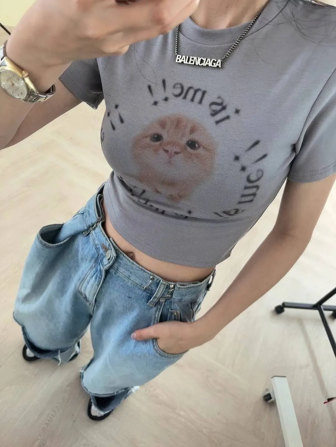 棉+縲縈+彈力 可愛it’s me貓貓 薄款舒適 短版好比例