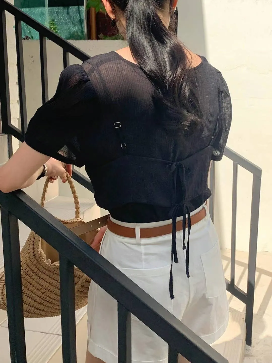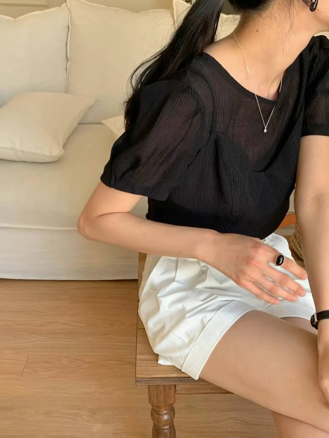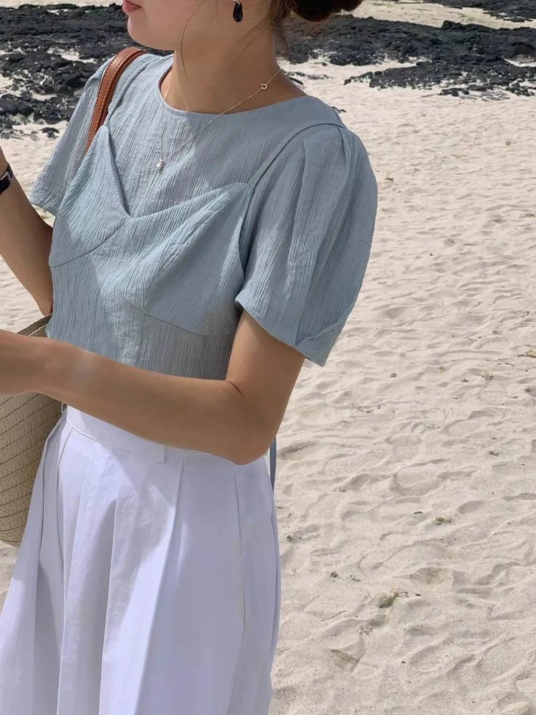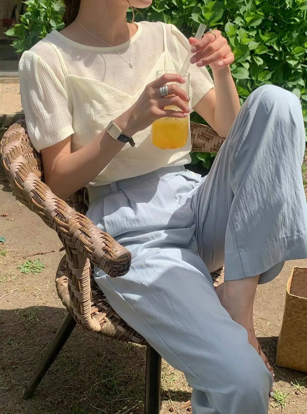 GG318新款質感薄款兩件式上衣 米 藍 黑 官網價$1280 線上價$1250