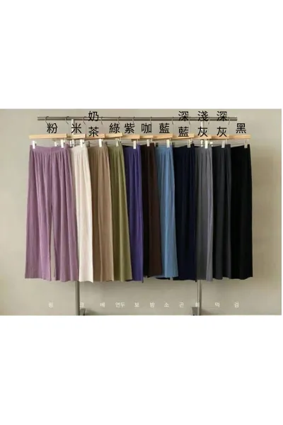 聚酯+彈力 垂墜感佳 空間寬鬆 全腰鬆緊 不易皺免熨燙