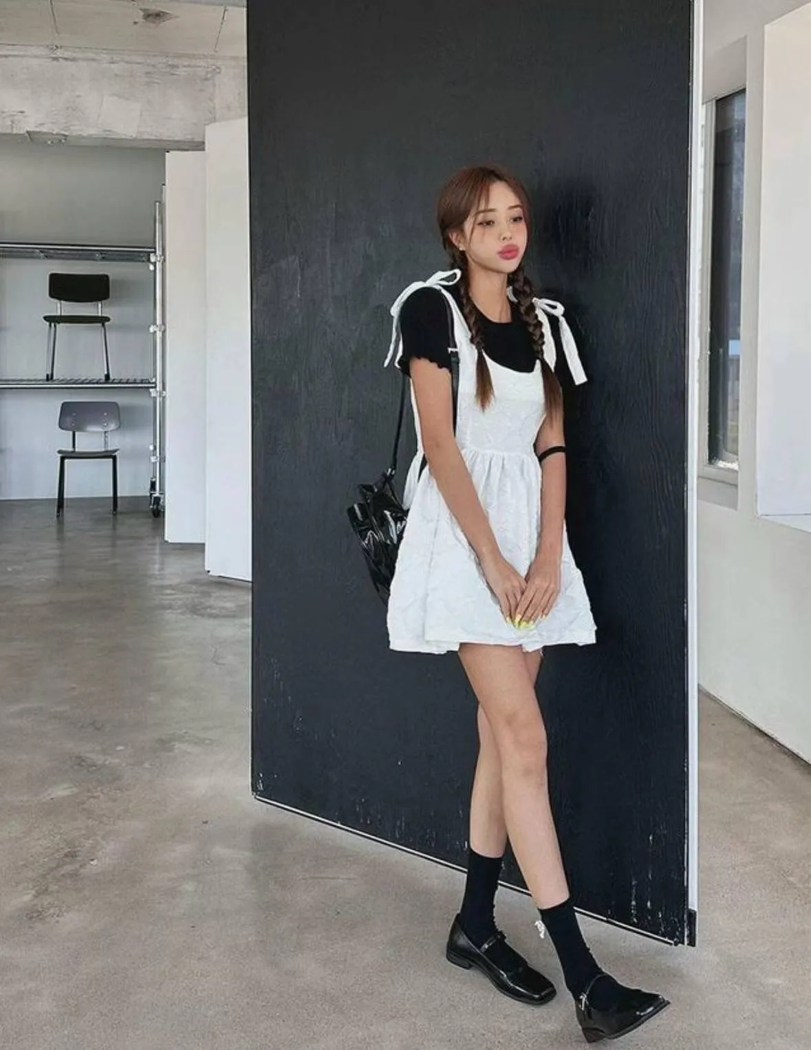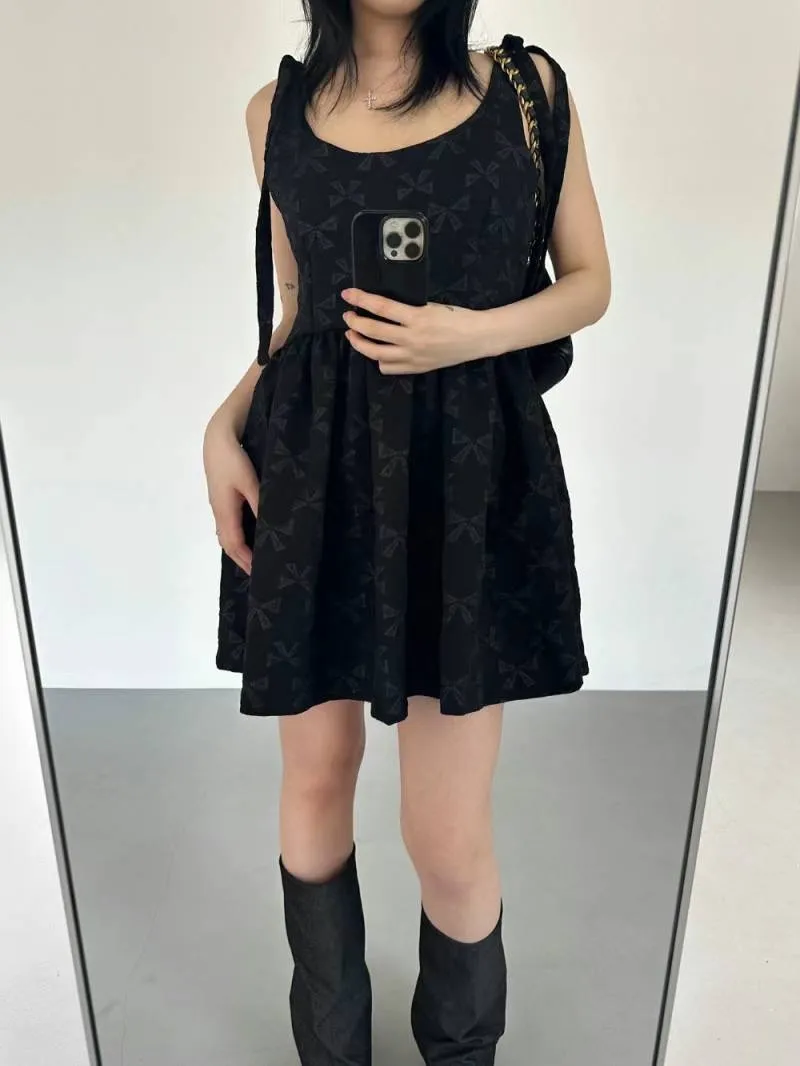 GG441新款美肩綁帶蝴蝶結洋裝 白 黑 官網價$1160 線上價$1130