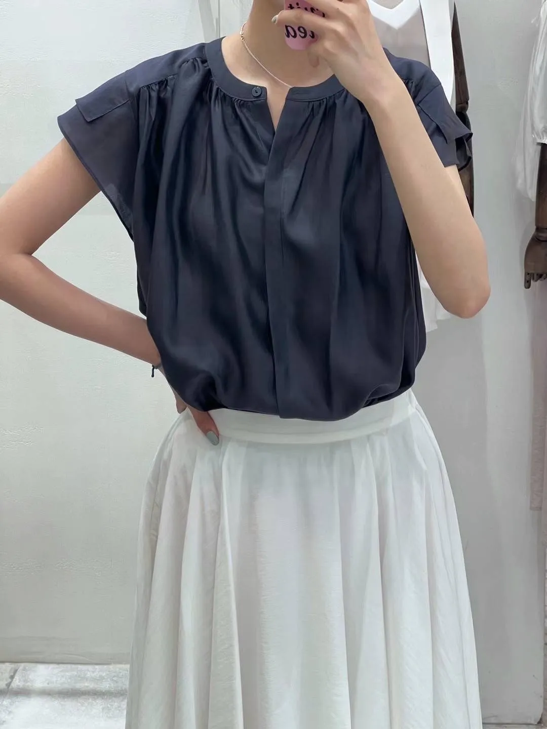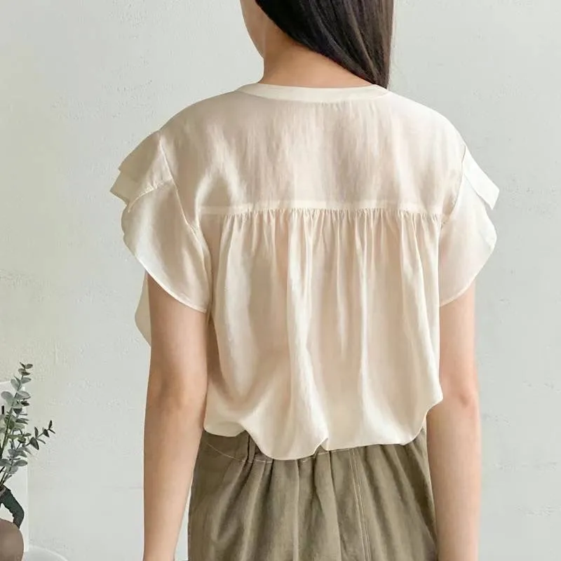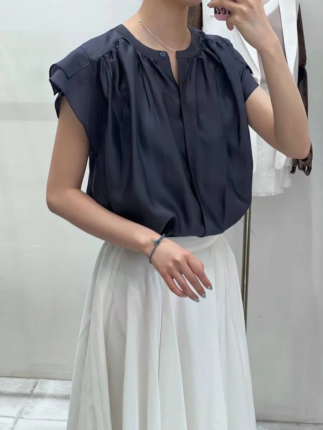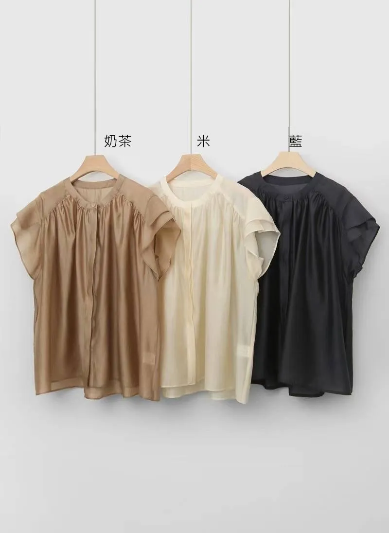 GG453新款天絲輕盈排釦上衣 米 藍 奶茶 官網價$1190 線上價$1160