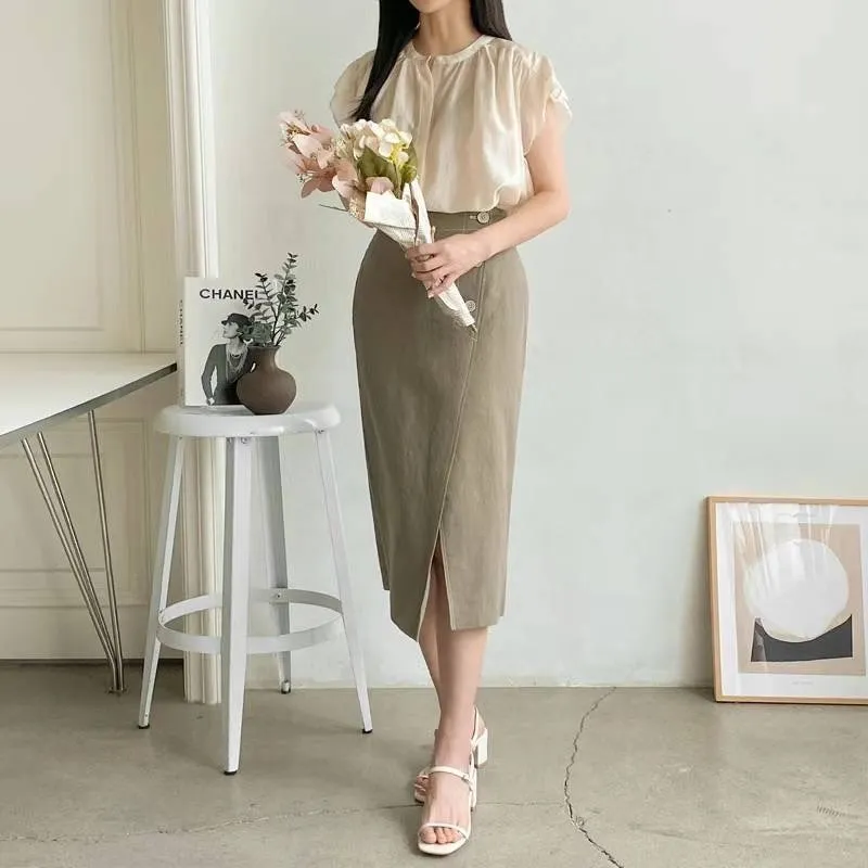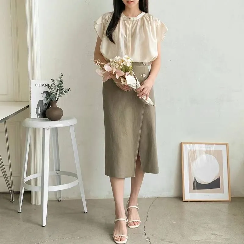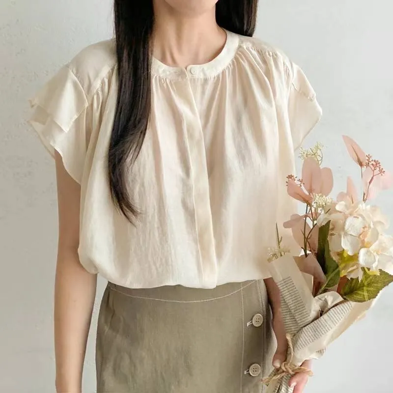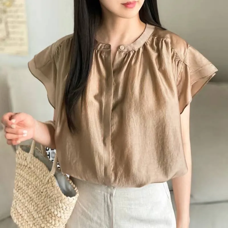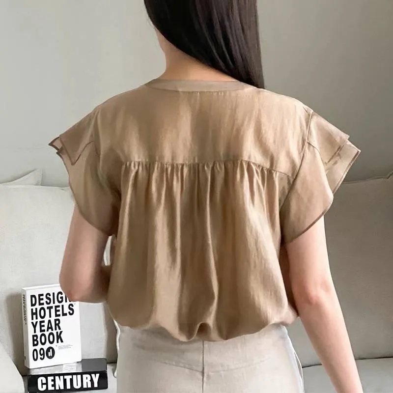 GG453新款天絲輕盈排釦上衣 米 藍 奶茶 官網價$1190 線上價$1160