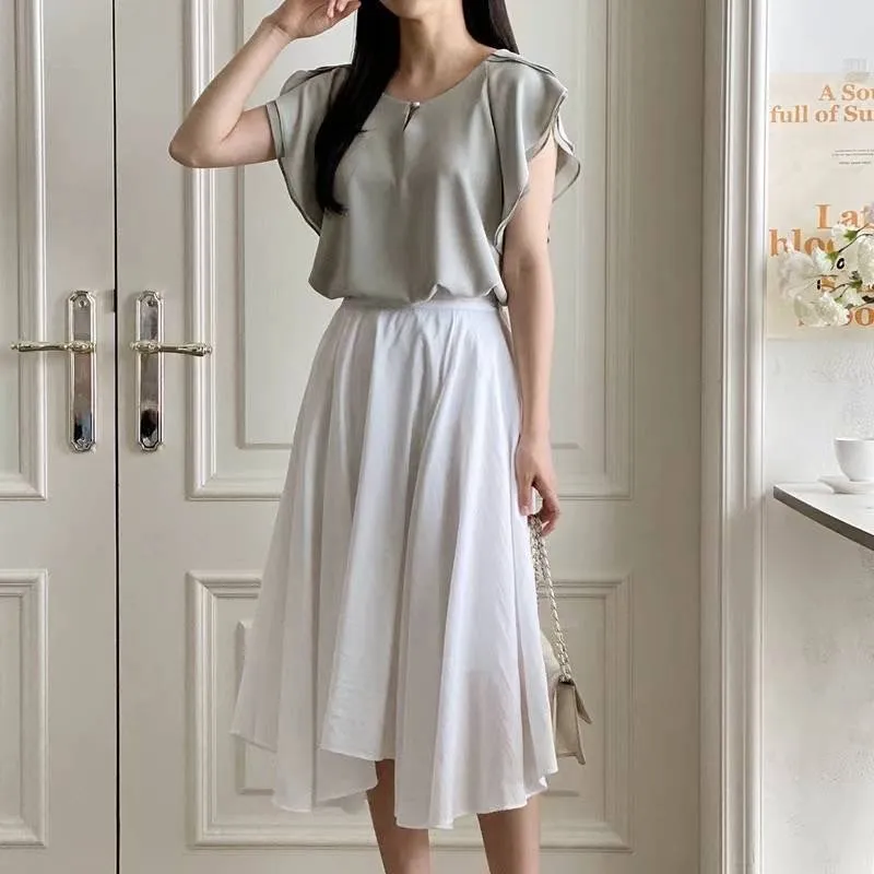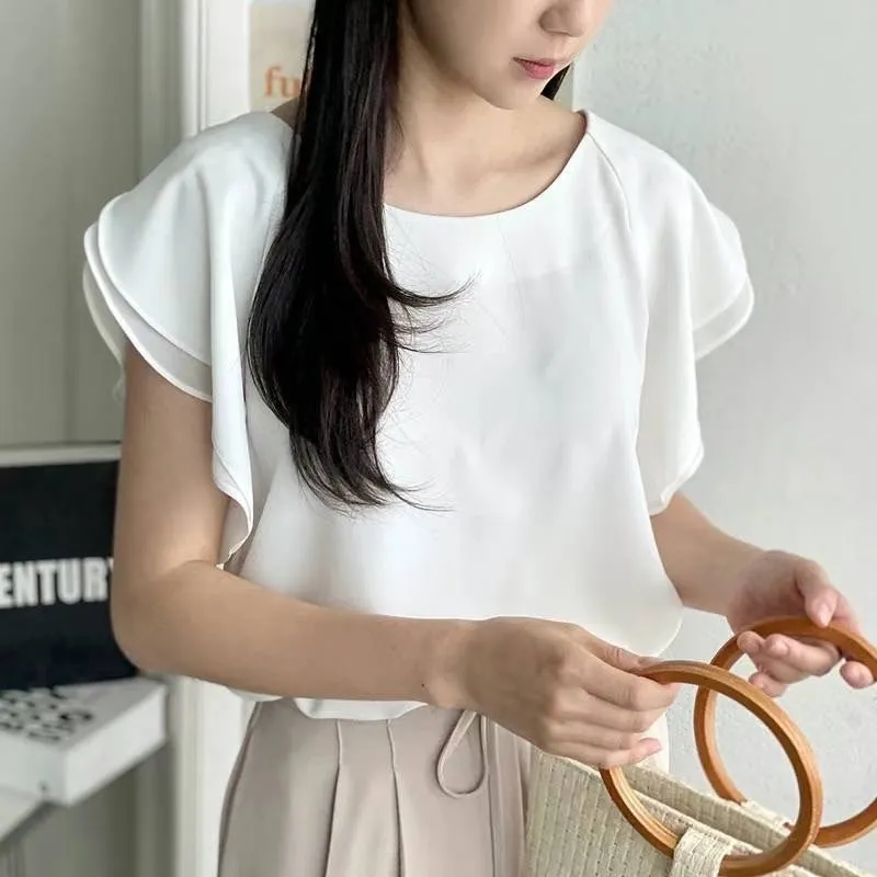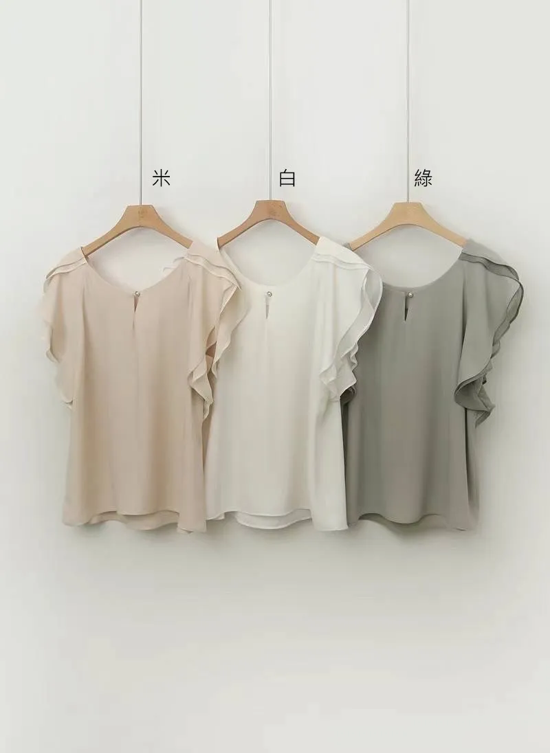 GG454新款雪紡層次美袖上衣 白 米 綠 官網價$1180 線上價$1150
