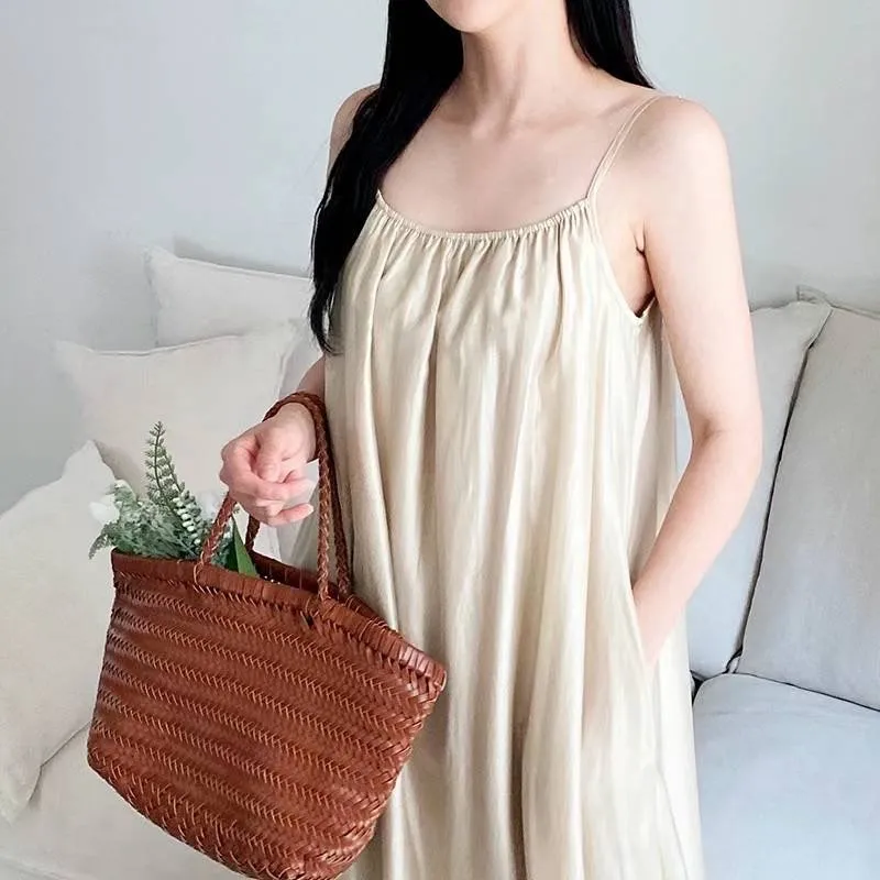 天絲 肩帶可調 親膚不刺癢 高級光澤感 有口袋 XXL友善