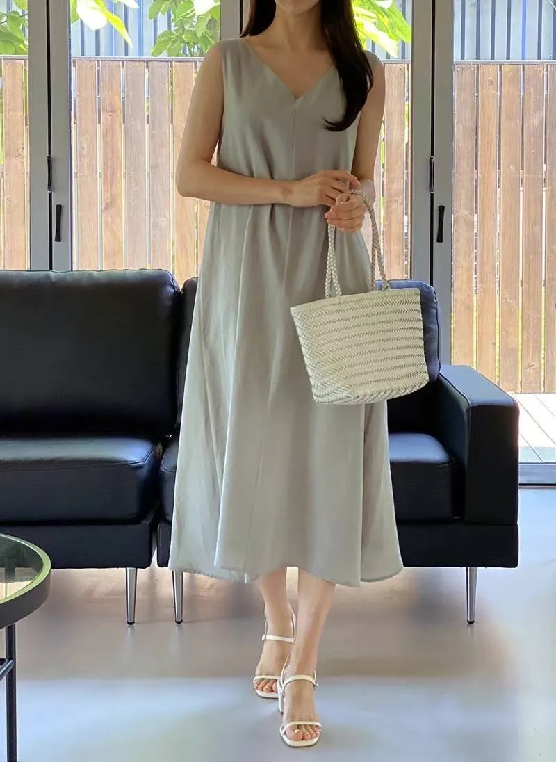 GG457新款V領氣質無袖洋裝 粉 綠 墨 官網價$1329 線上價$1299