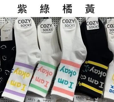GG492我很好I’m okay襪(條紋分色) 紫 綠 橘 黃 $39 包色$140