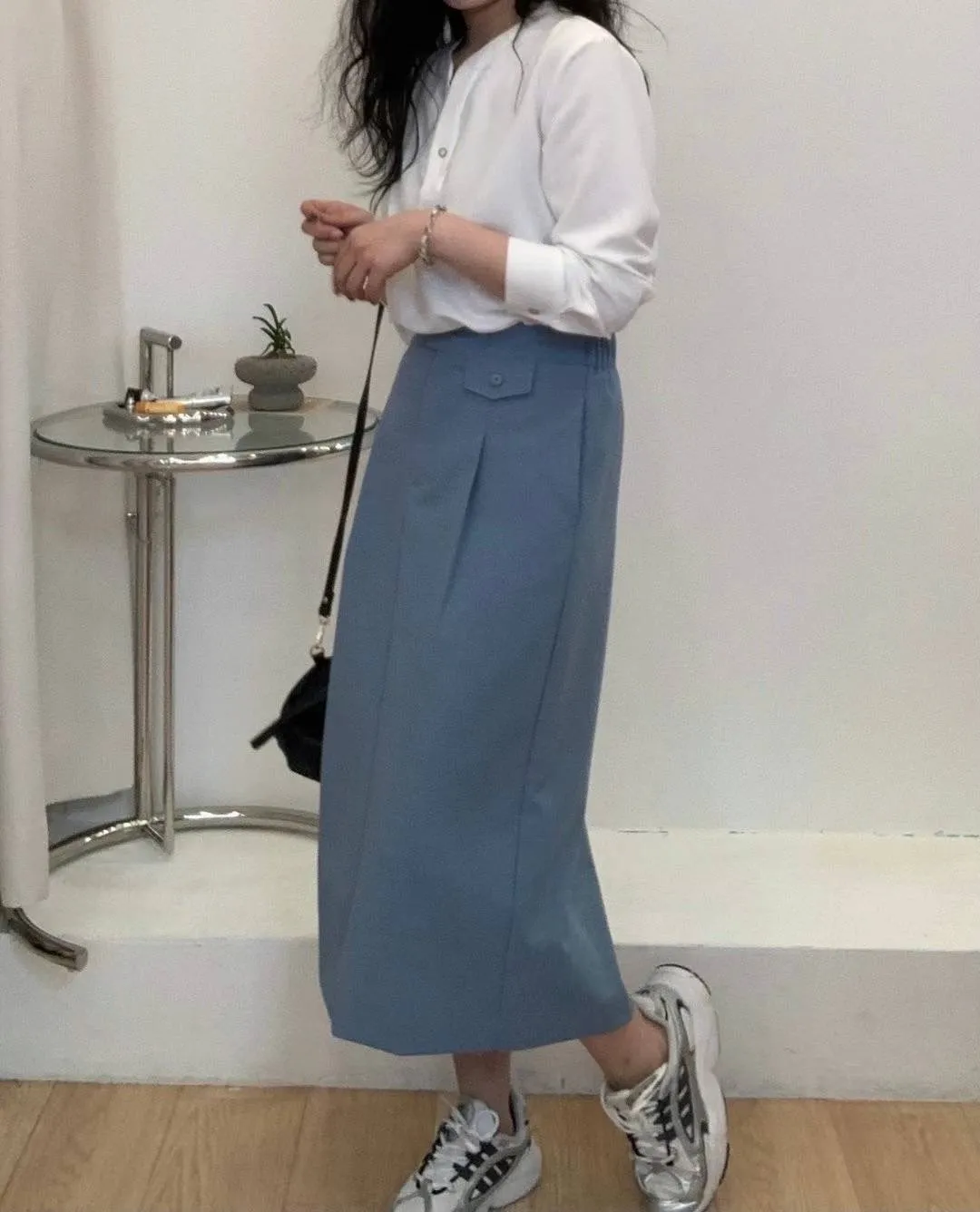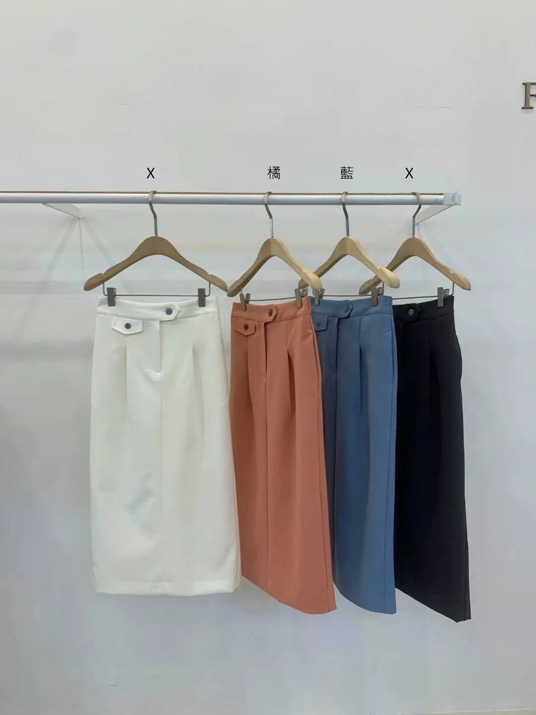 GG585特價側腰釦美裙 藍 橘 S M 特價$740