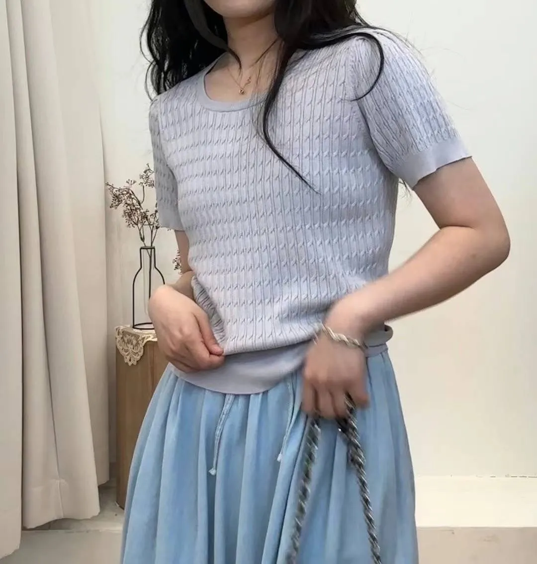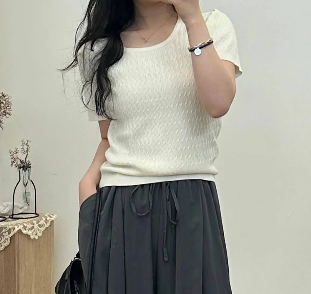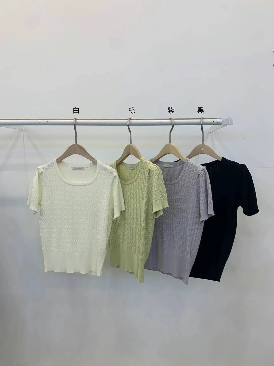 GG589特價天絲針織短袖上衣 白 綠 紫 黑 特價$720