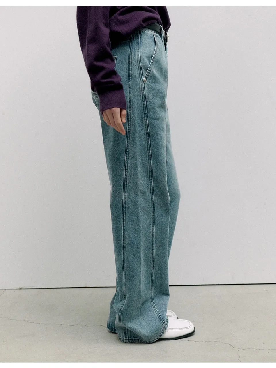 棉 正常厚度 復古刷色設計 後腰皮革標 褲管偏長