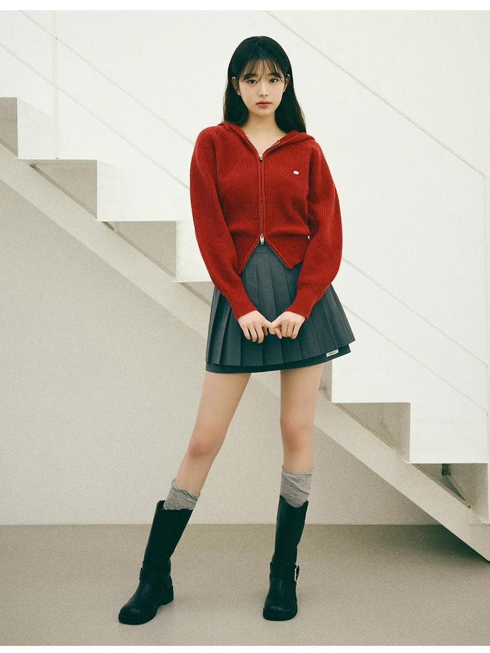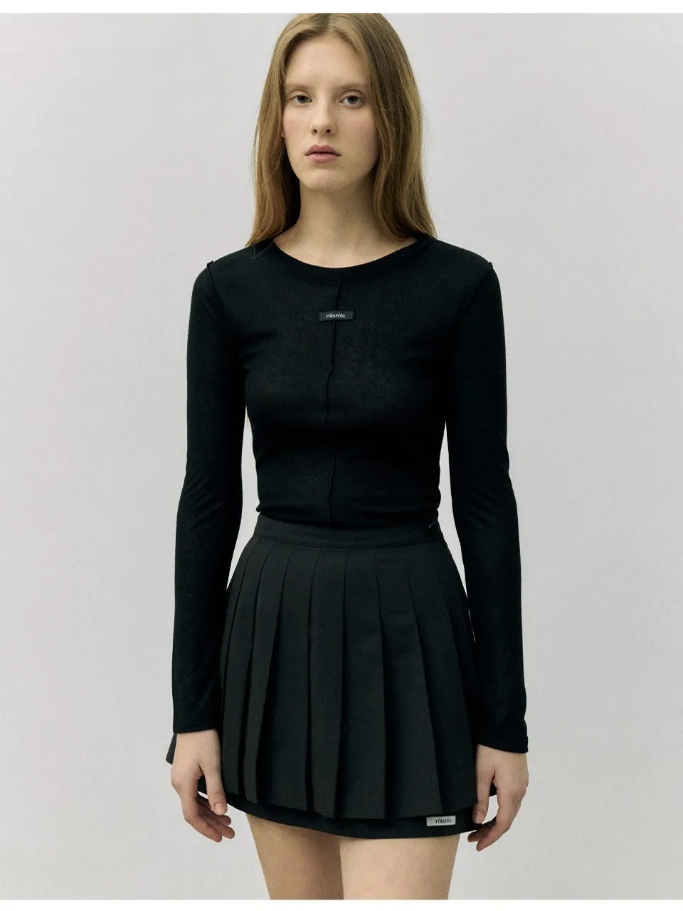 GM006質感小標百褶褲裙 灰 黑 S M 官網價$1890 線上價$1860