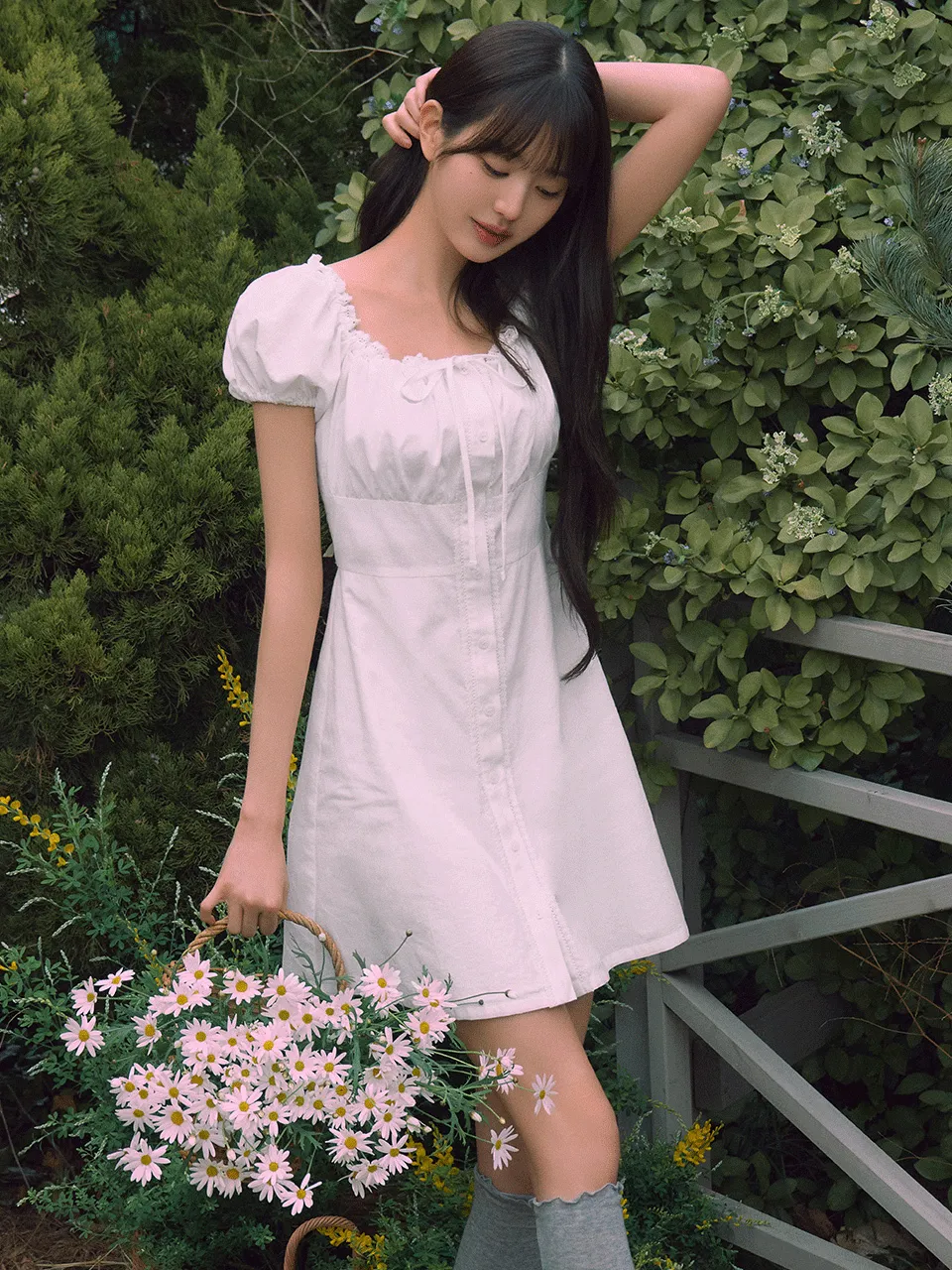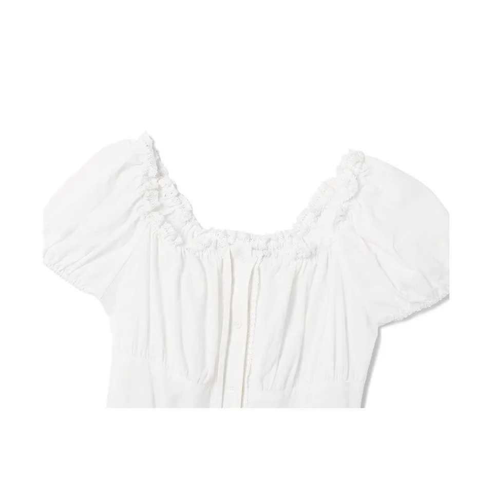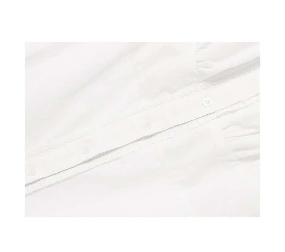 棉 親膚舒適 排扣穿脫 胸抓皺有綁帶 領口蕾絲 可拉一字領