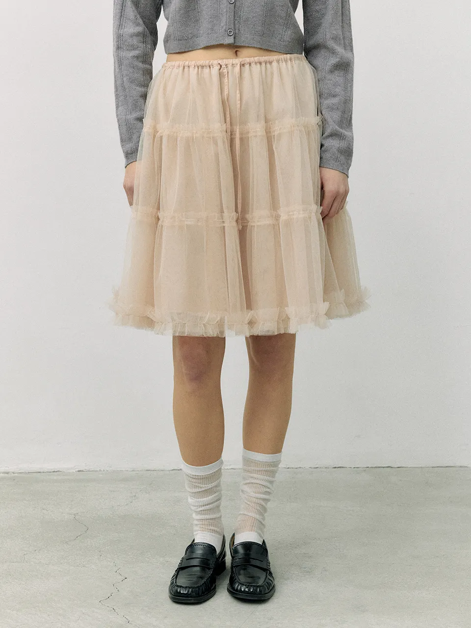聚酯 腰有鬆緊抽繩 層次蛋糕網紗 自然傘擺