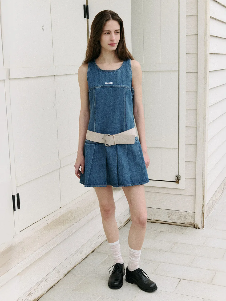 GM028無袖丹寧牛仔腰身洋裝 S M 官網價$2580 線上價$2550