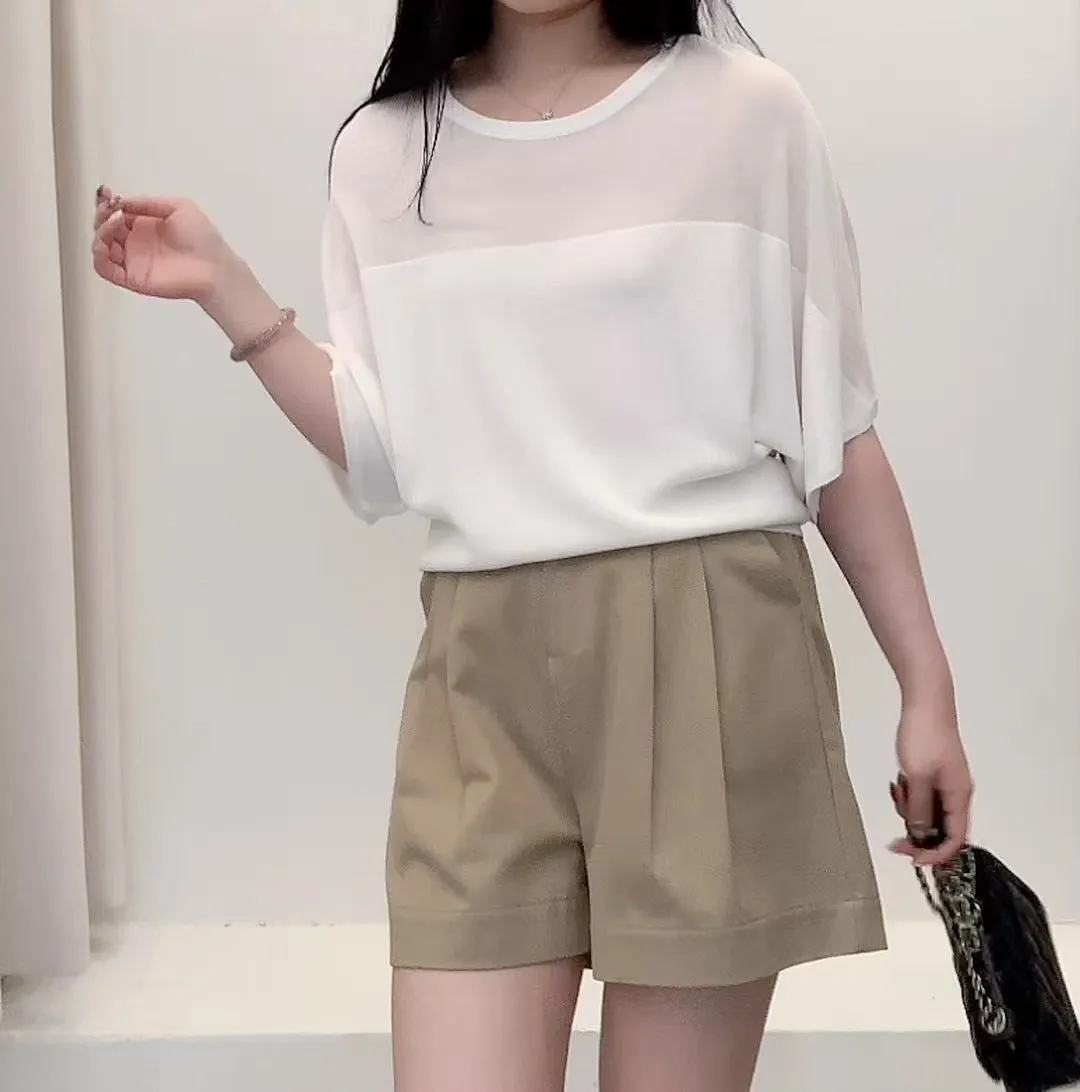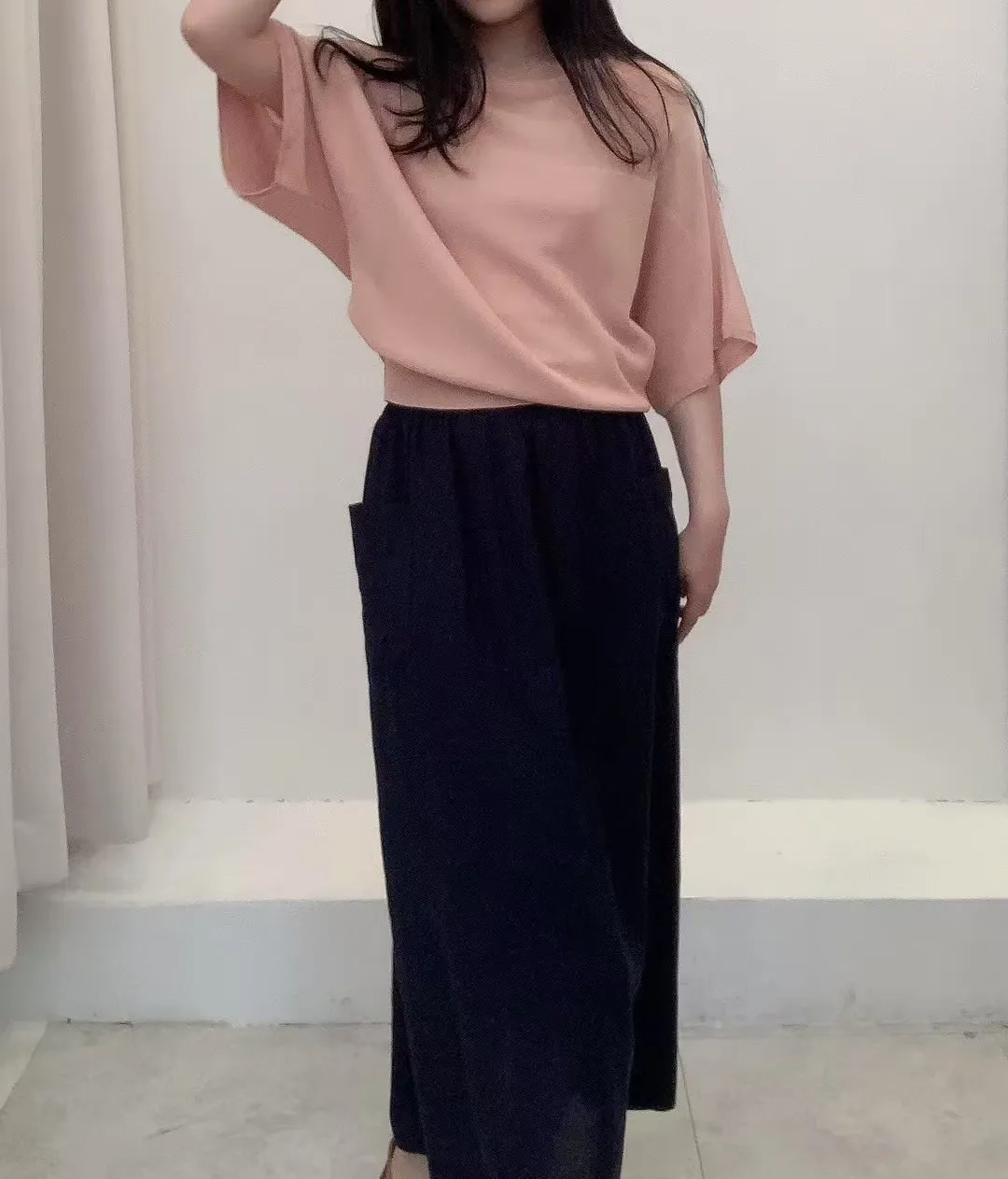 天絲+絲綢+聚酯 親膚舒適 透氣顯瘦 寬袖下擺縮口 藏肉好比例