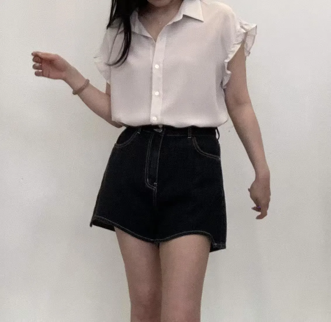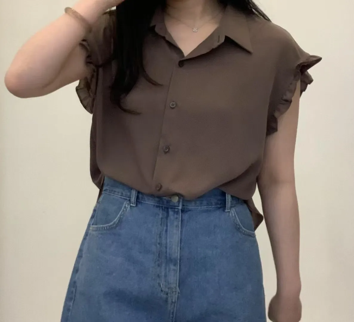 高級雪紡 觸感細緻 垂墜感滑順 寬鬆舒適 荷葉袖空間佳