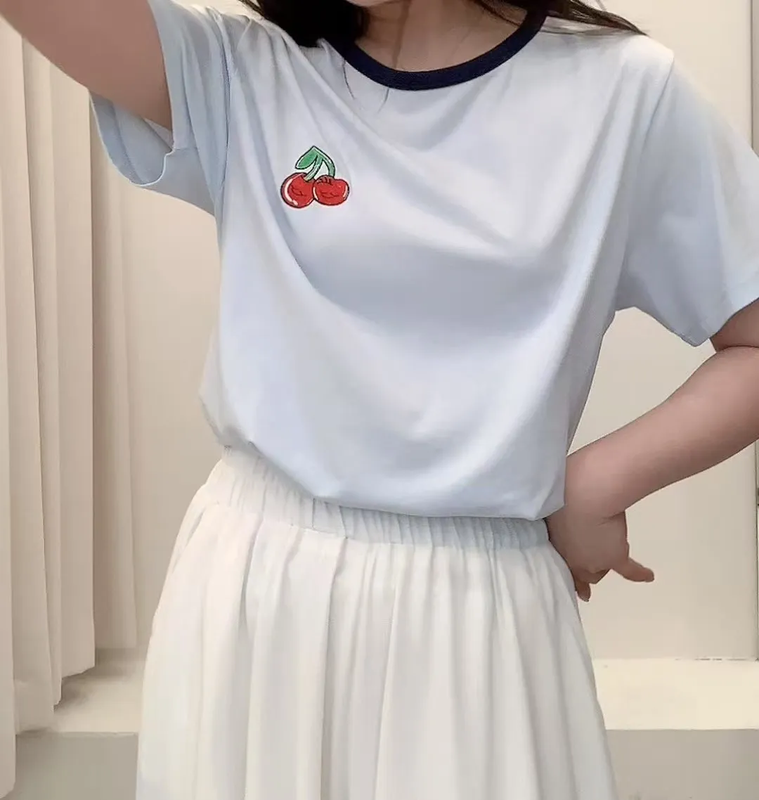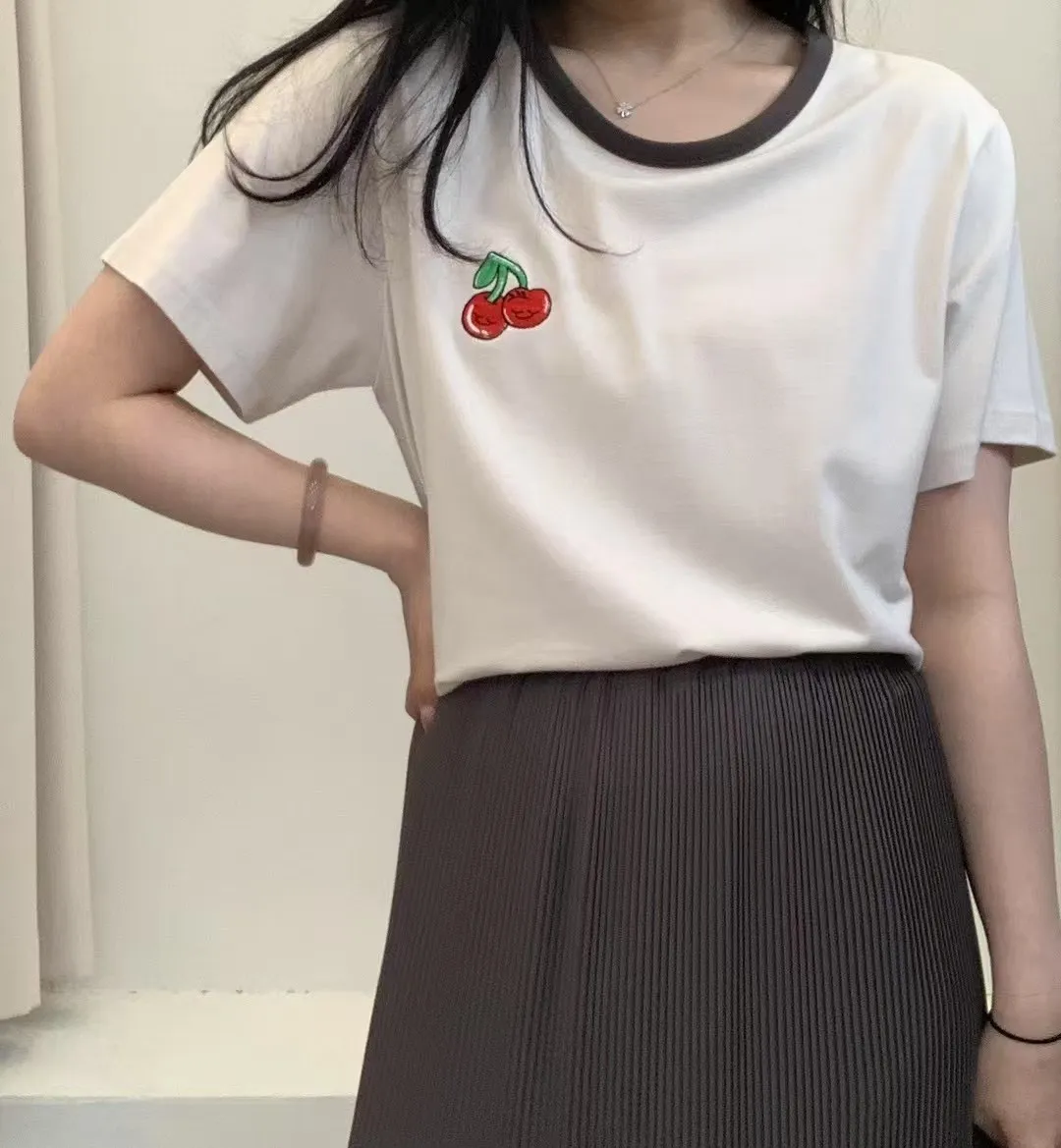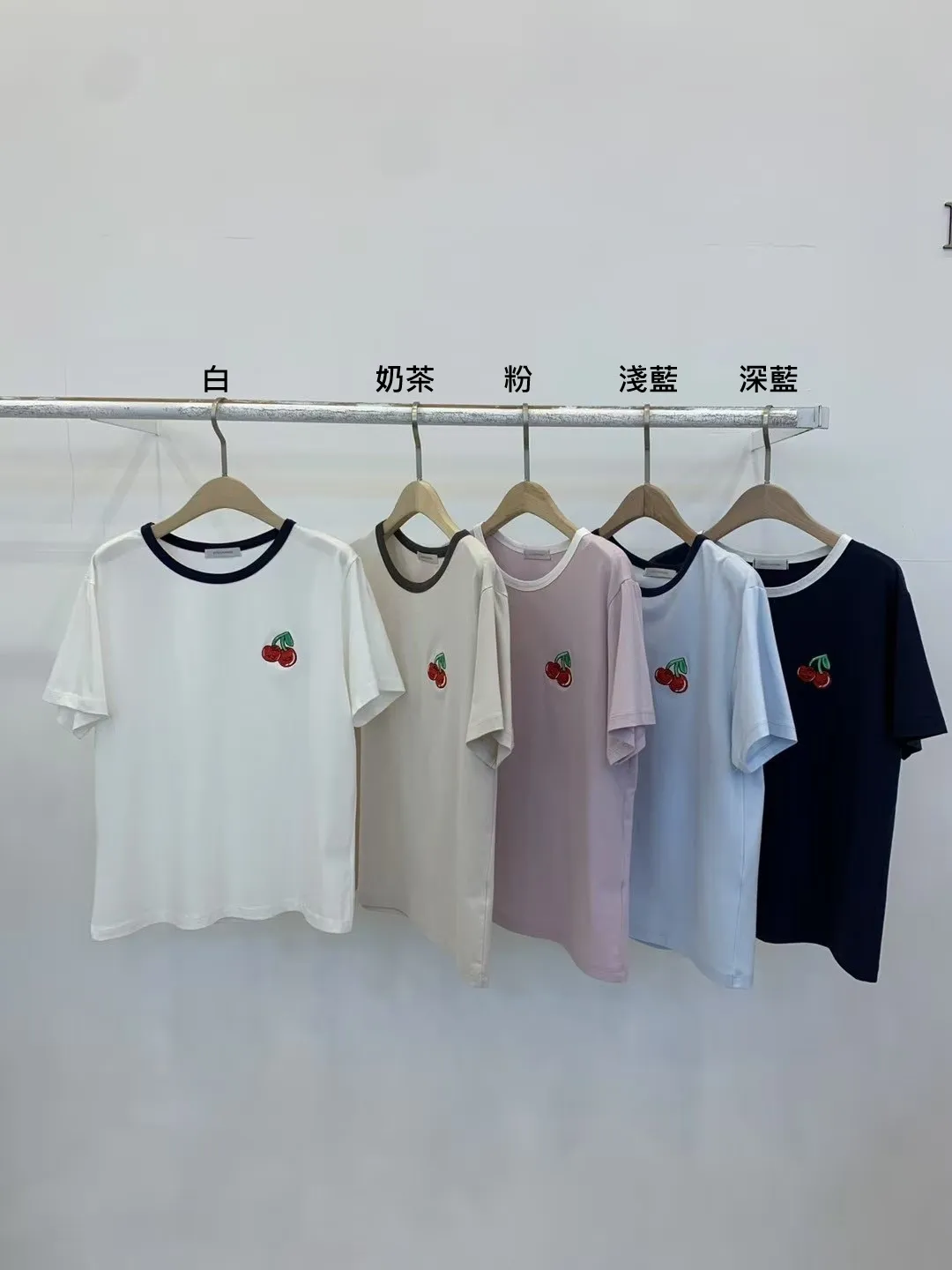 棉+莫代爾+彈力,親膚舒適 夏日甜美色系 手工刺繡櫻桃不刺癢